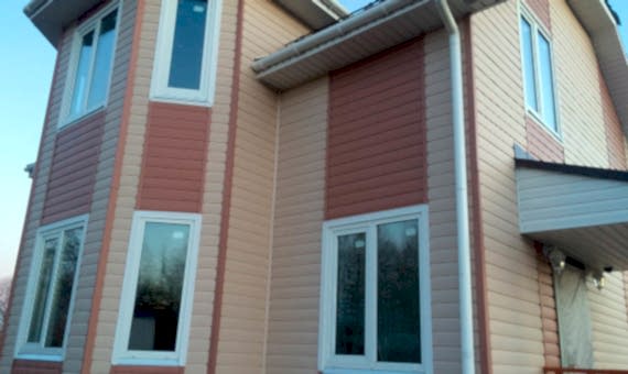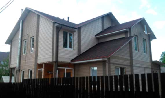 Каркасный дом площадью 260 кв.м. Наружная отделка из сайдинга, комплектация базовая. Данный дом мы построили в Алматы, в поселке «Орехово зуево». Срок возведения 2.1 месяца.