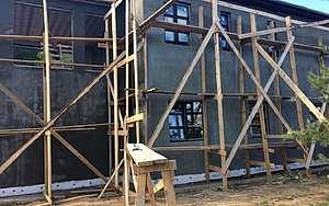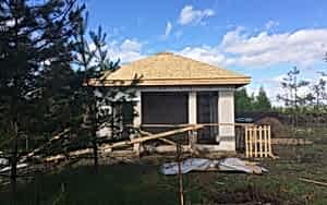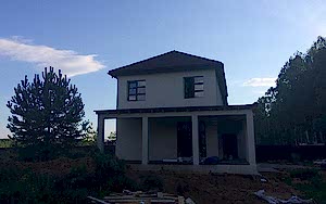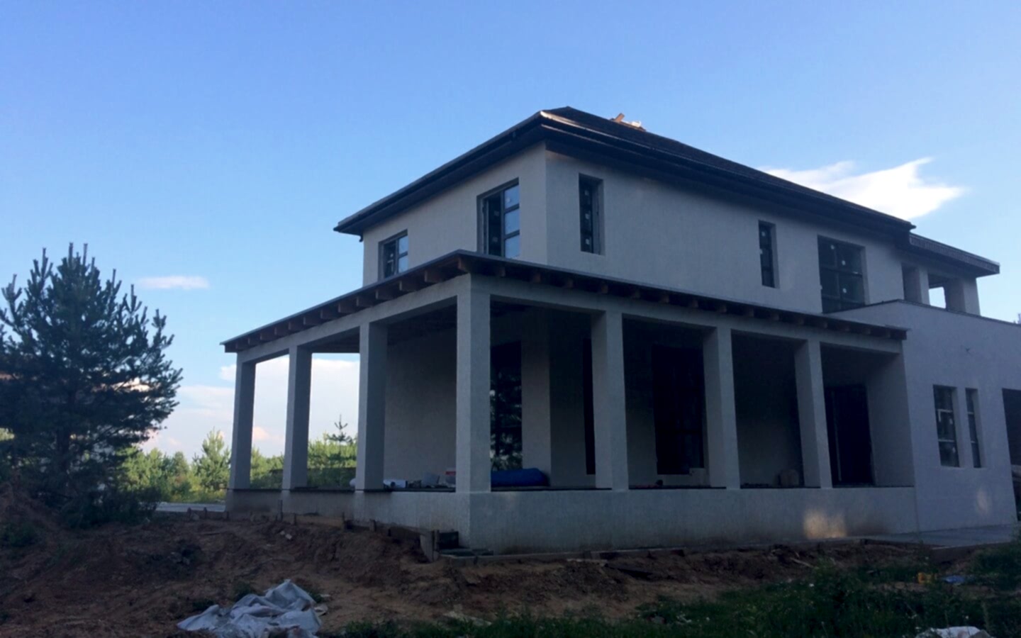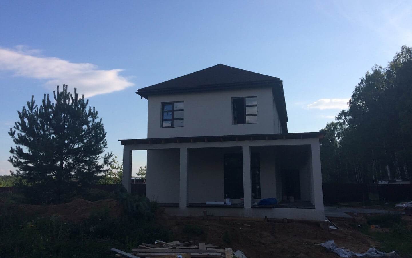 Двух этажный дом из газобетона с балконом и большой террасой, отделка фасада выполнена декоративной штукатурки.Площадь Кабанбай батыра, 12 би, 97 дома составляет 120 кв.м, cроки строительства 4.5 месяца. Данный дом построен в Астане, в поселке «Сокольское»