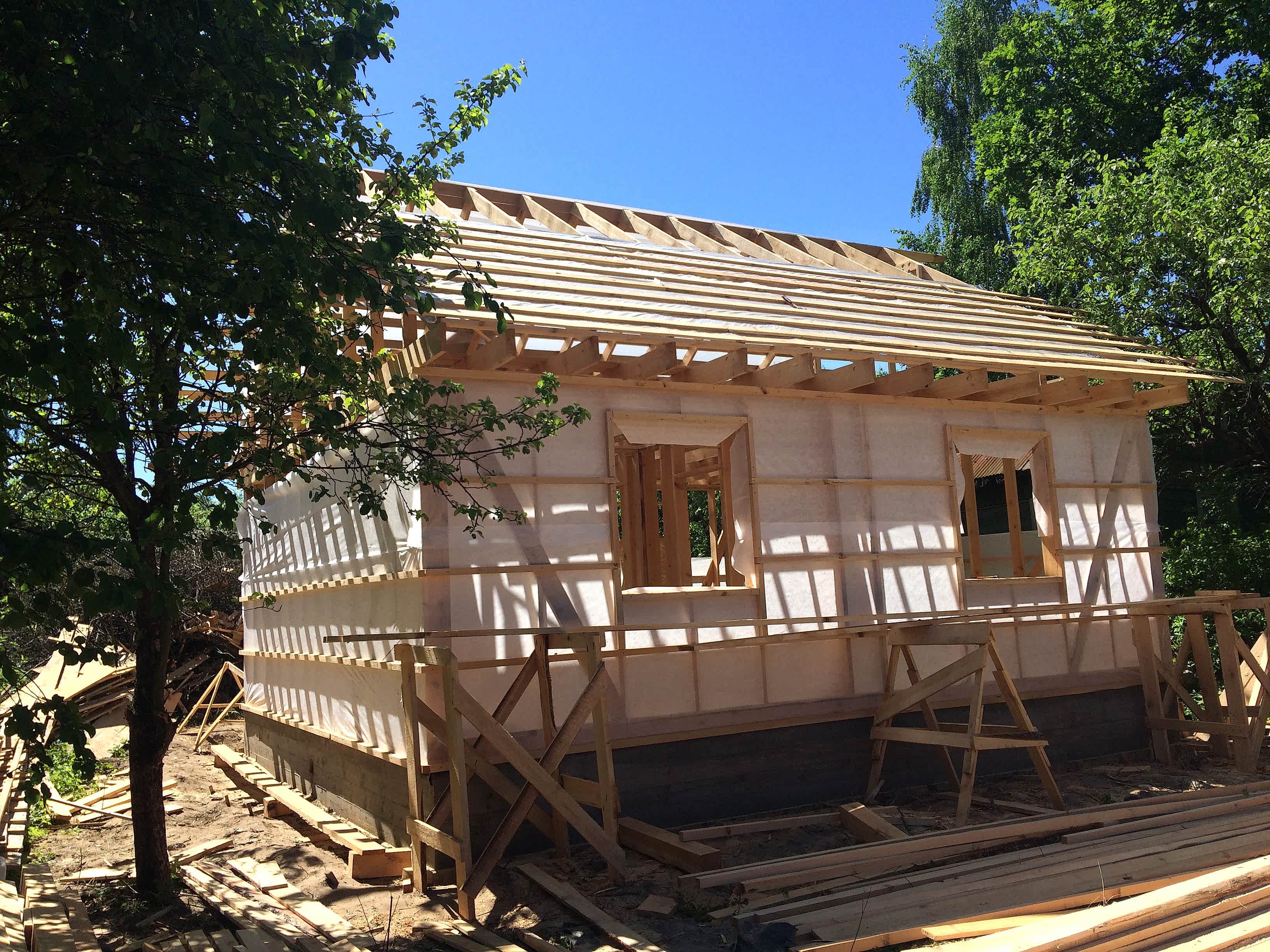 Каркасный дом площадью 100 кв.м. Наружная отделка из профнастила, комплектация базовая. Данный дом мы построили в Алматы, в СНТ поселке «Полимер». Срок возведения 2.1 месяца. Фотографии загружены не все, скоро обновим