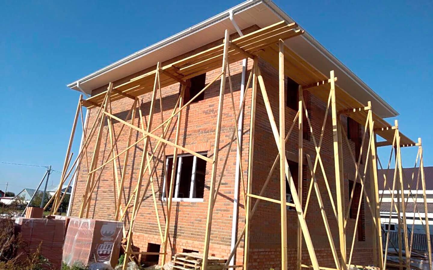 Фотоотчет строительства: Коробка из керамического кирпича площадью 280 кв.м, 280 кв.м. Материал стен: Кирпич. Расположение: Pin Up Срок возведения: 3.9 месяца