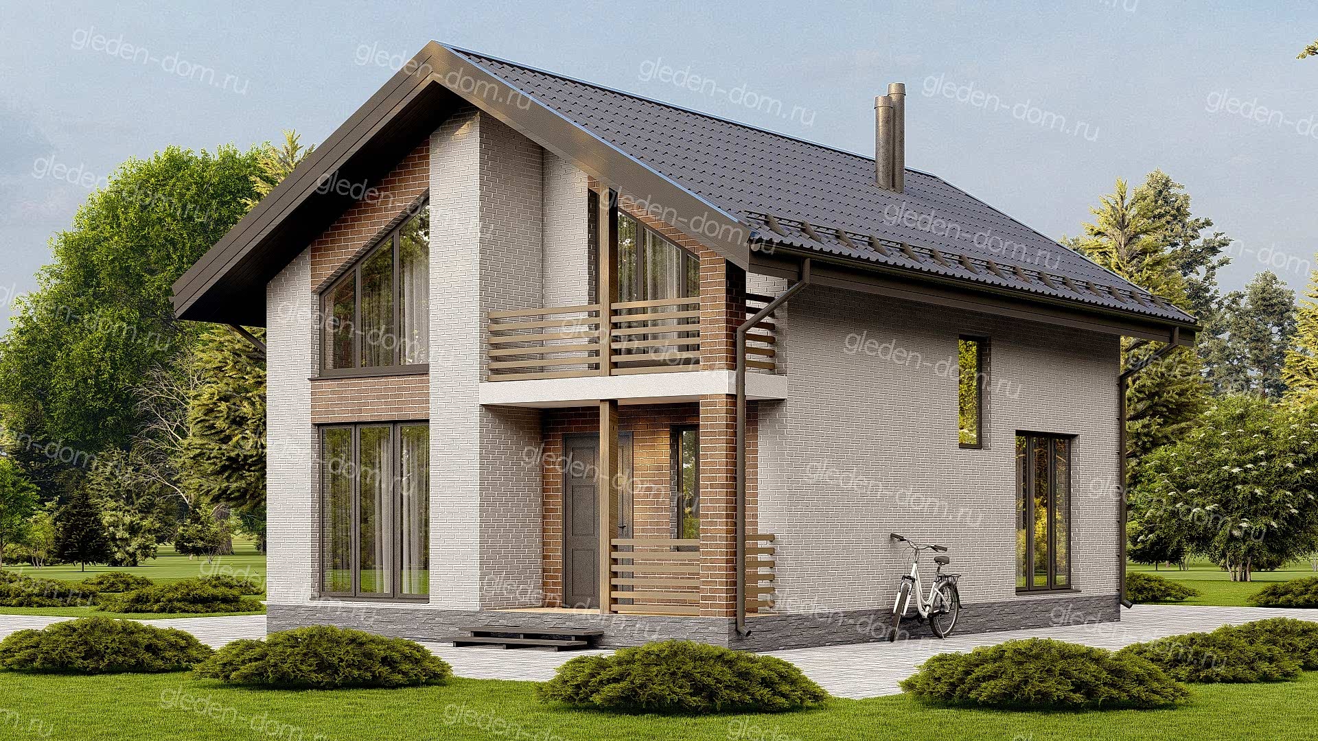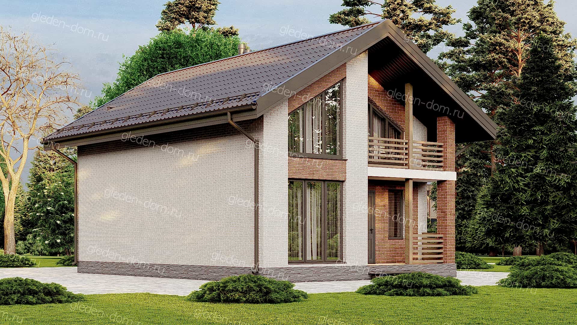Проект двухэтажного дома «Gleden A-2» из газобетонных блоков.Площадь Pin Up 128 составляет 53 кв.м а размеры 8 x 9