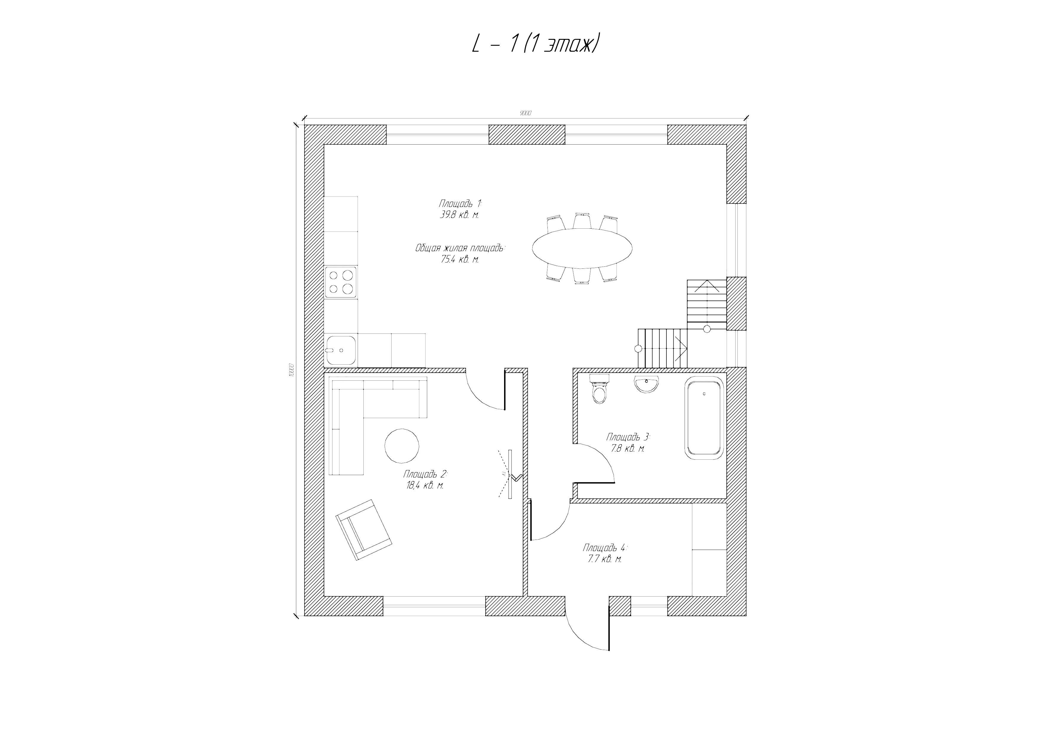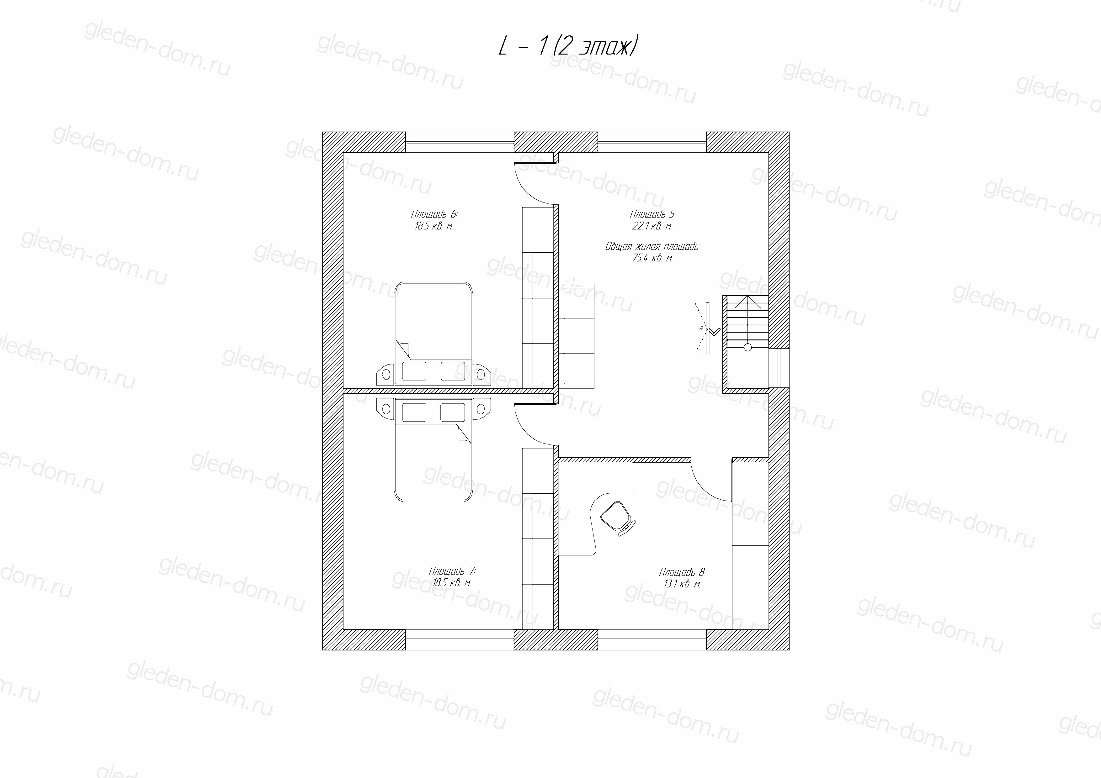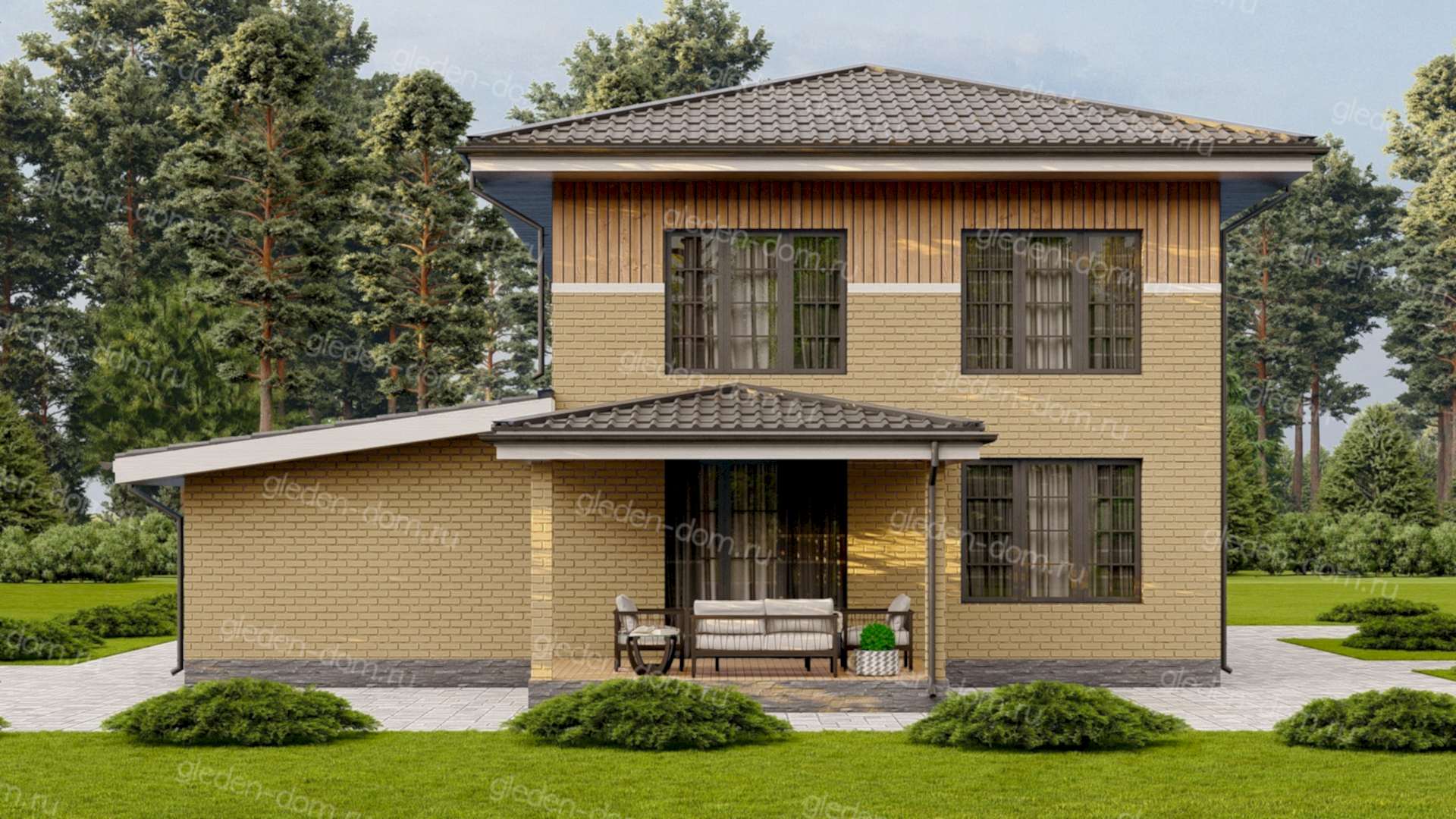Проект двухэтажного дома «Gleden L-1» из газобетонных блоков.Площадь Толе би, 10 батыра, 77 составляет 75 кв.м а Pin Up 9 x 10