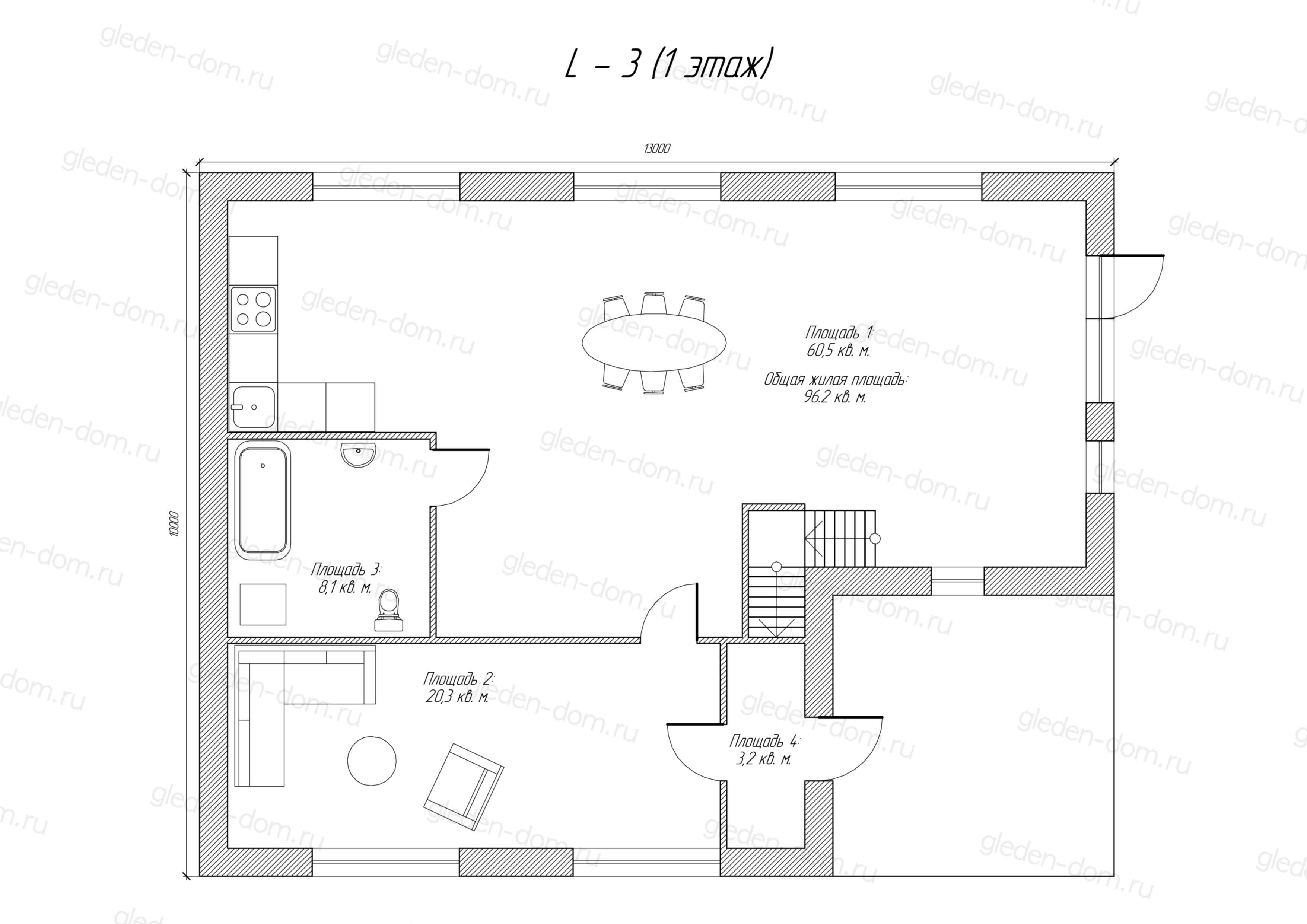 Проект одноэтажного дома Pin Up RA-3» из газобетонных блоков.Площадь Назарбаева, 118 составляет 92 кв.м а размеры 13 x 10