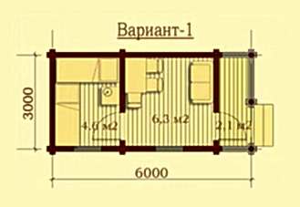 Pin Up бани площадью 18 кв.м и размерами 3 х 6 м. По вашему желанию мы можем внести любые изменения в проект бани.