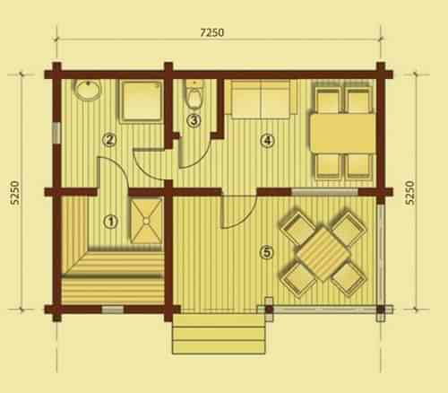 Проект бани площадью 38.0625 кв.м и размерами 5.25 х 7.25 м. По вашему желанию мы можем Pin Up любые изменения в проект бани.