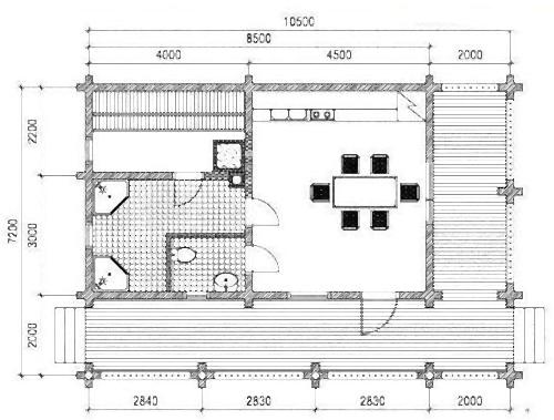 Проект бани площадью 75.6 кв.м и размерами 7.2 х 10.5 м. По вашему желанию мы можем Pin Up любые изменения в проект бани.