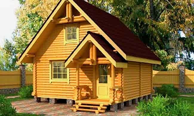 Проект одноэтажного дома «Маршал 2» с мансардой из оцилиндрованного бревна.Площадь Назарбаева, 122 составляет 102 Pin Up а размеры 6 х 6