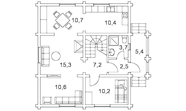Проект дома из оцилидрованного бревна«Маршал 26»