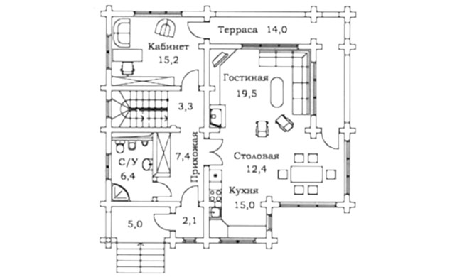 Проект дома из оцилидрованного бревна«Маршал 44»
