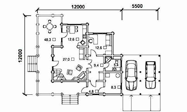 Проект дома из оцилидрованного бревна«Маршал 57»
