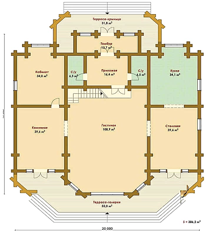 Проект дома из оцилидрованного бревна«Маршал 94»