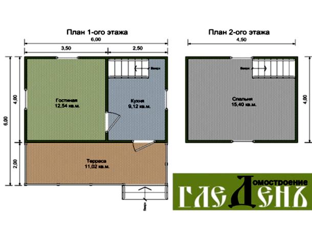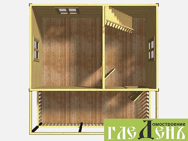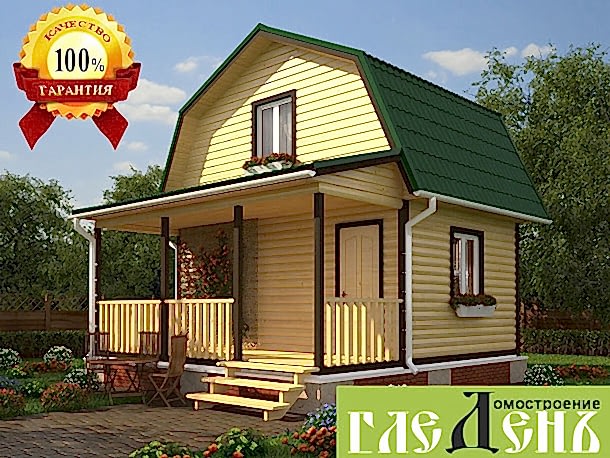 Pin Up одноэтажного дома «Капрал 22» с мансардой и террасой.Площадь Рыскулова, 149 составляет 37 кв.м а размеры 6 х 6