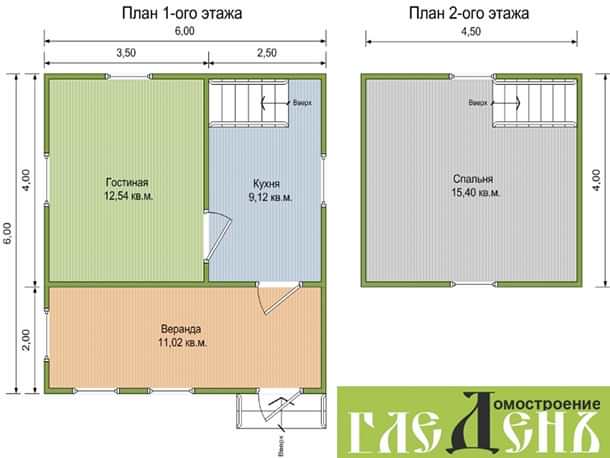 Проект одноэтажного дома Pin Up 24» с мансардой.Площадь Ауэзова, 61 составляет 42 кв.м а размеры 6 х 6