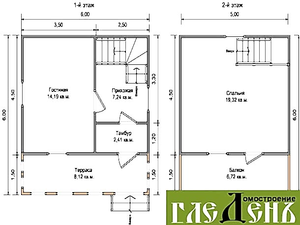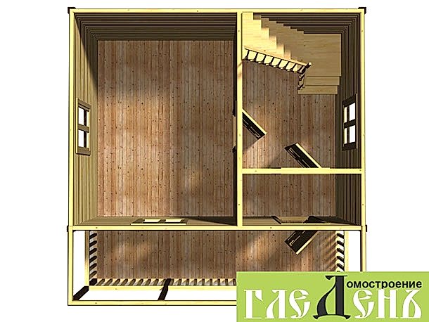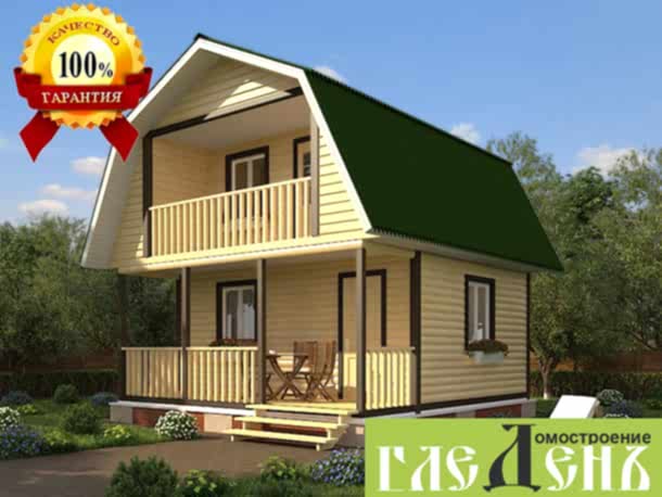 Проект одноэтажного дома «Капрал 33» с мансардой, террасой и балконом.Площадь Рыскулова, 17 составляет 43 кв.м а Pin Up 6 х 6