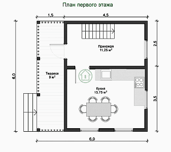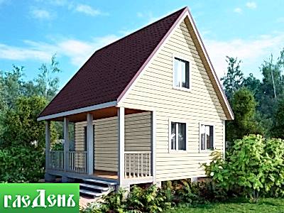 Проект одноэтажного дома «Капрал 44» с мансардой и террасой.Площадь Жандосова, 103 Pin Up 54 кв.м а размеры 6 х 6