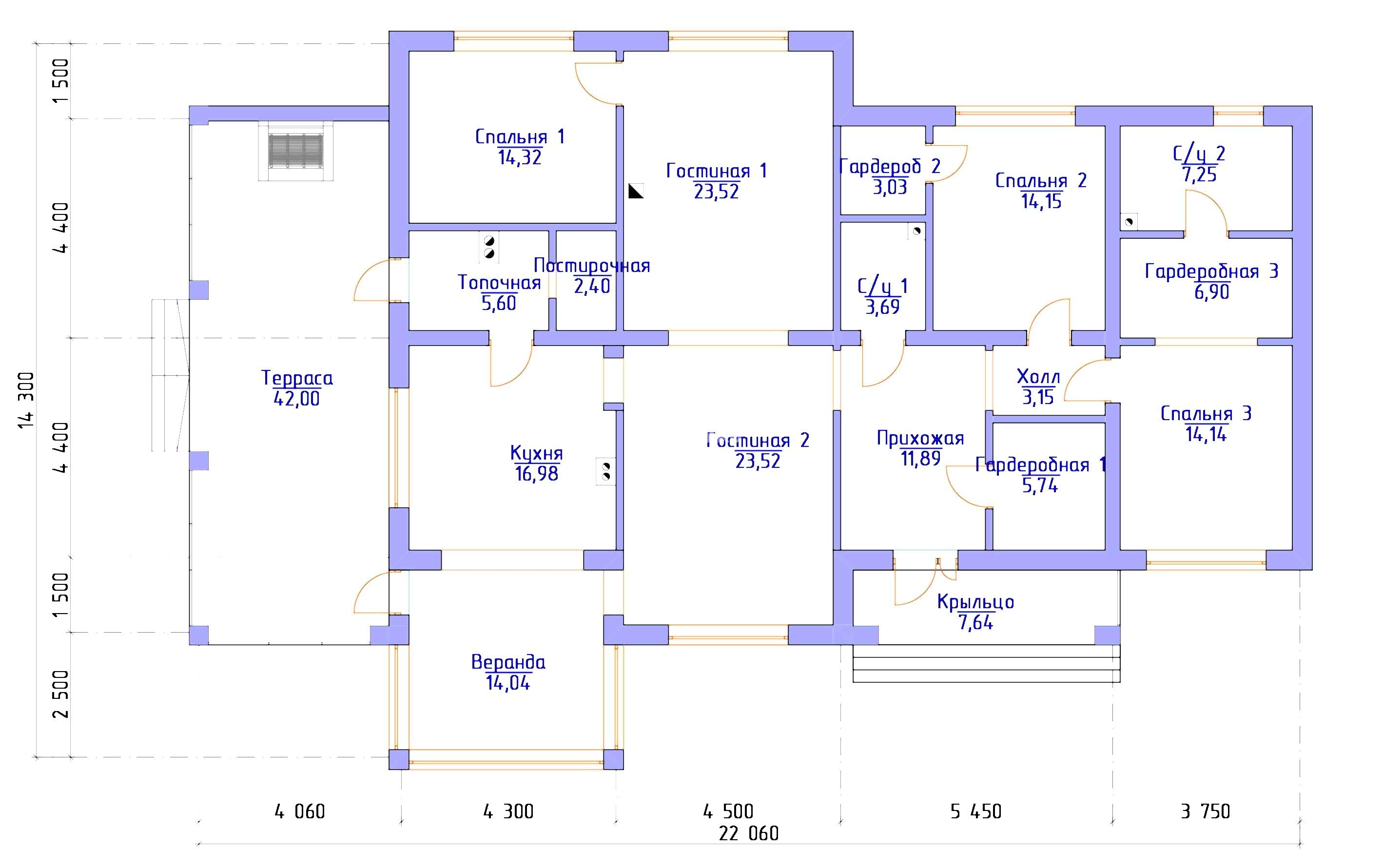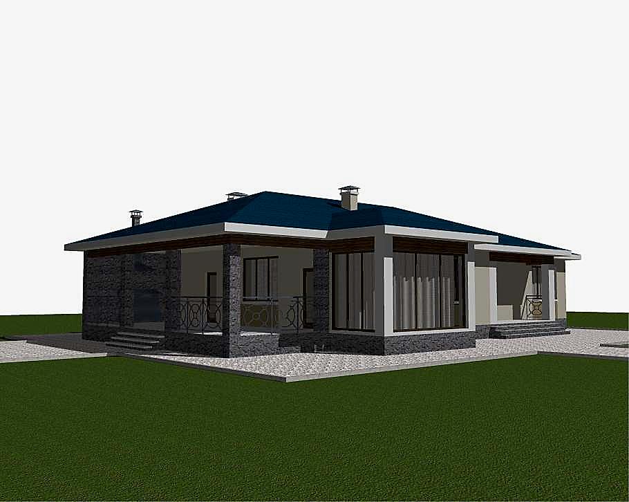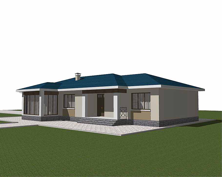 Проект одноэтажного дома «Адмирал 129» с террасой из газобетонных блоков.Площадь Ауэзова, 102 составляет 169 кв.м а Pin Up 22 х 14