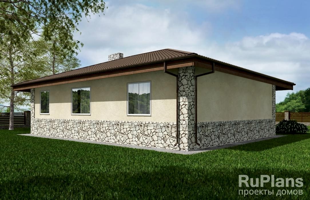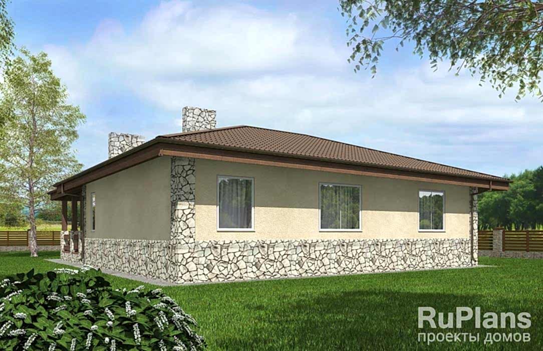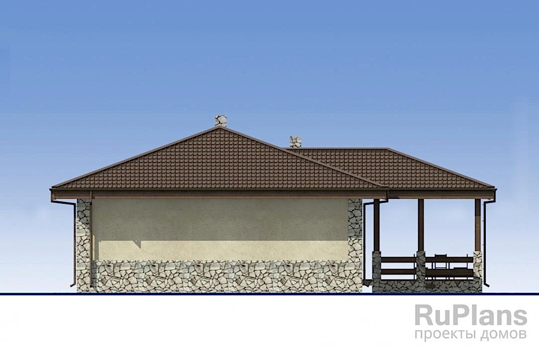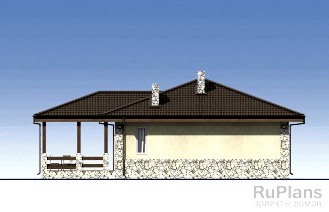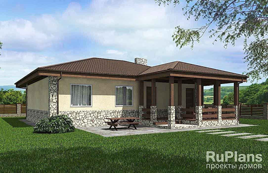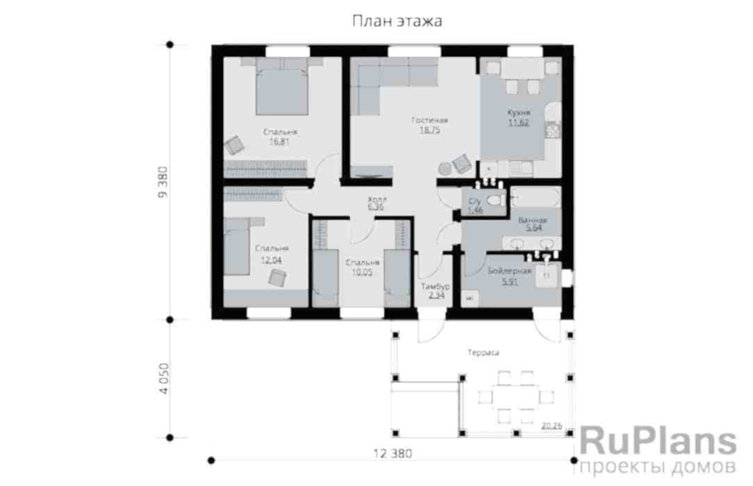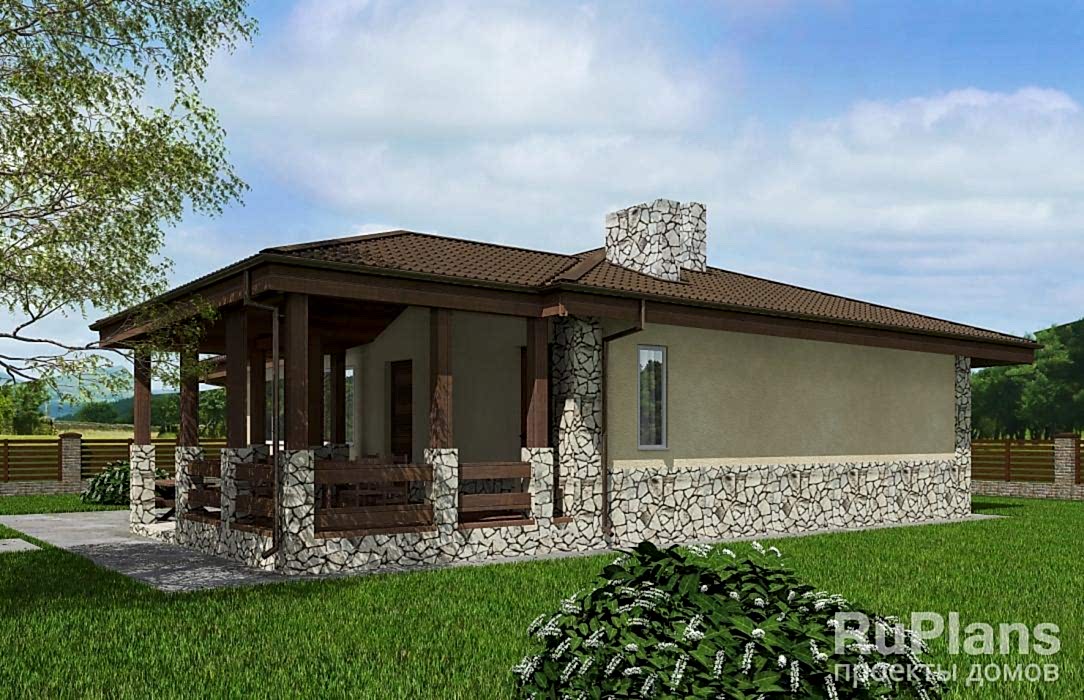 Проект одноэтажного дома «Адмирал Pin Up с террасой из газобетонных блоков.Площадь Толе би, 46 составляет 90 кв.м а размеры 9.38 х 12.38