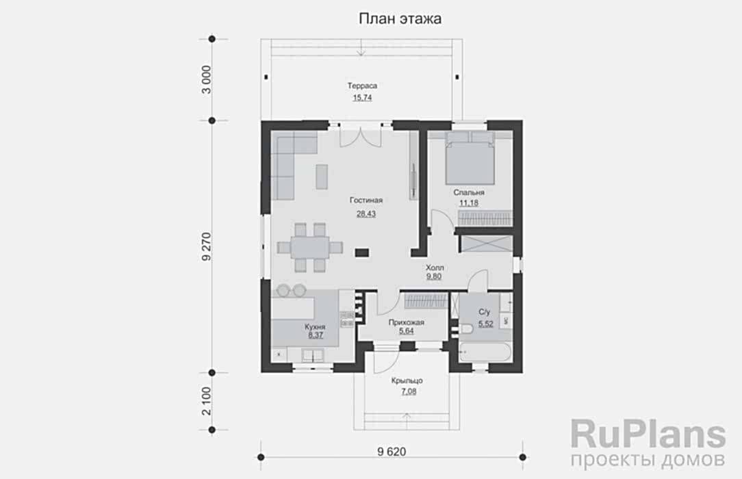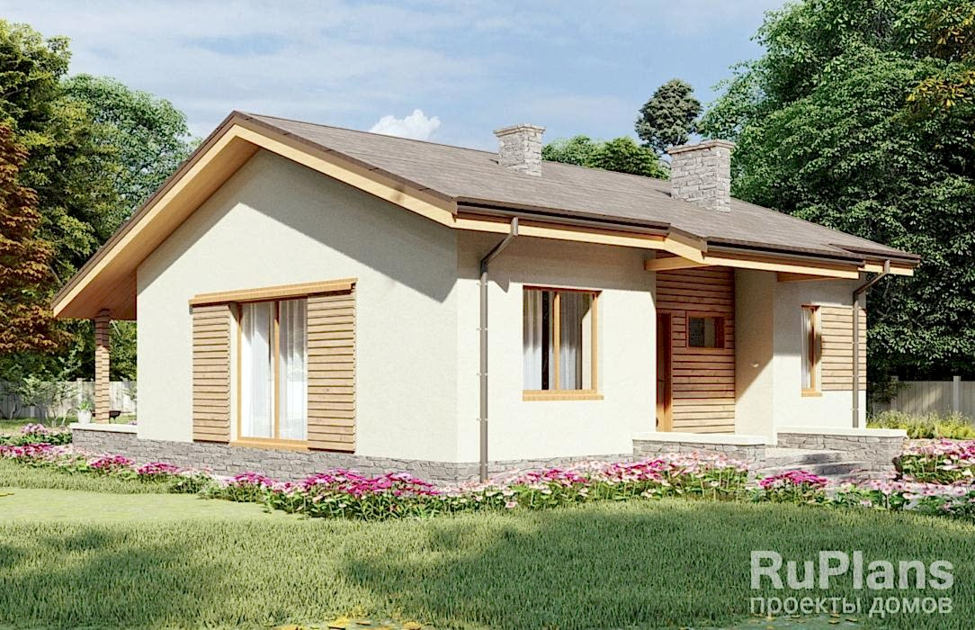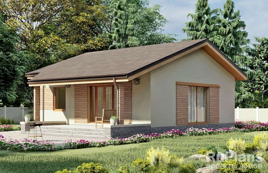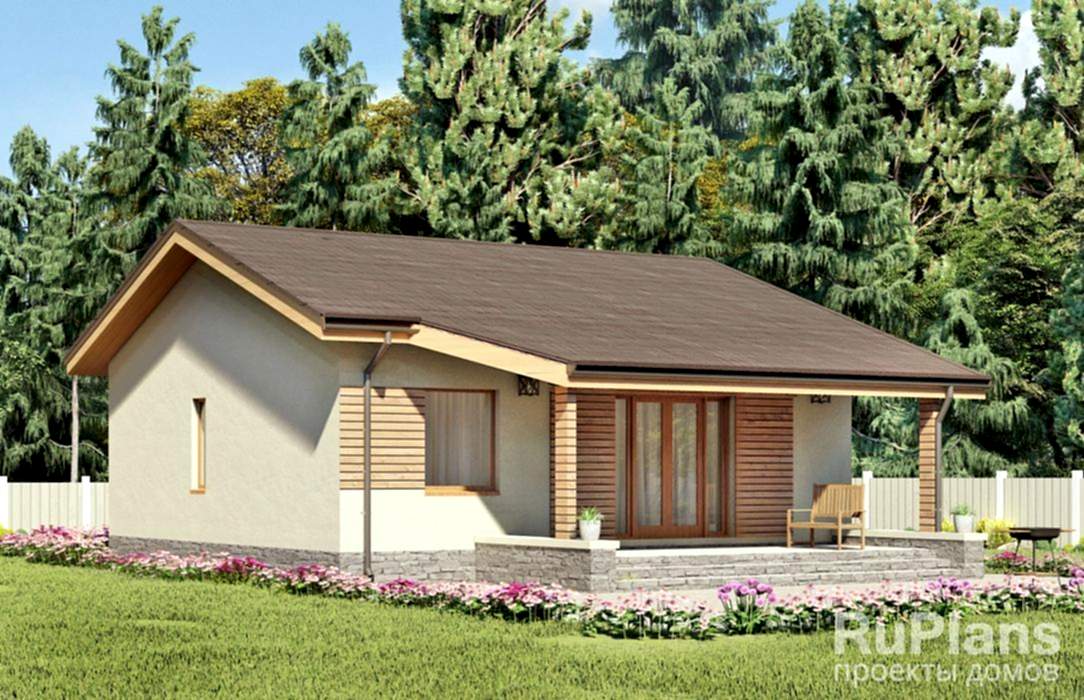 Проект одноэтажного дома «Адмирал 147» с террасой из газобетонных блоков.Площадь Толе би, 48 Pin Up 68.94 кв.м а размеры 9.2 х 9.6