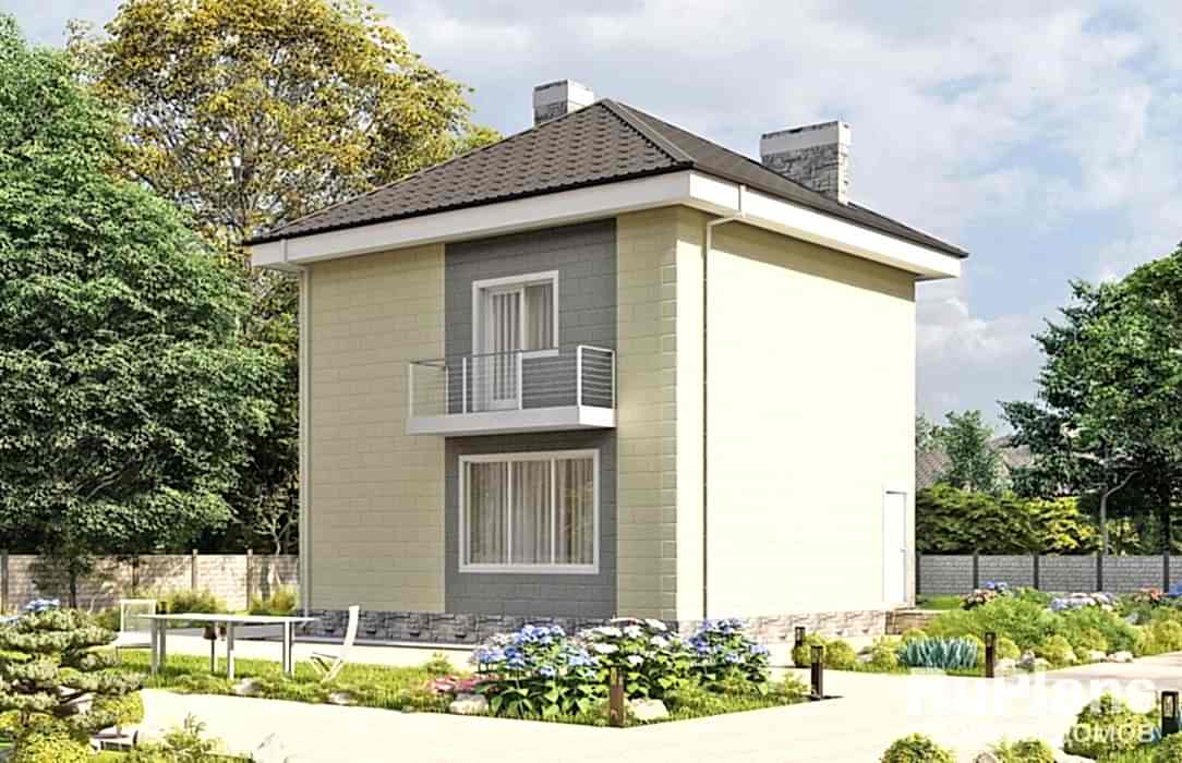 Проект двухэтажного дома «Адмирал 158» с балконом из газобетонных блоков.Площадь Кабанбай батыра, 113 Pin Up 108 составляет 105.16 кв.м а размеры 8.45 х 8.1