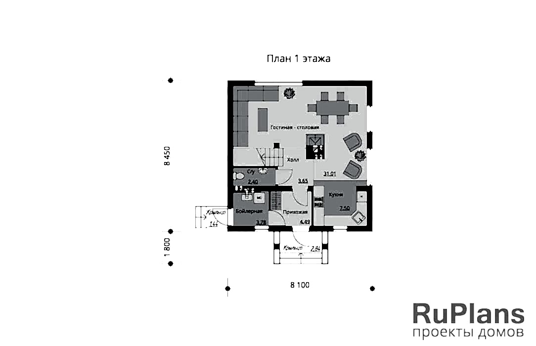 - Размеры:8.45 х 8.1 м