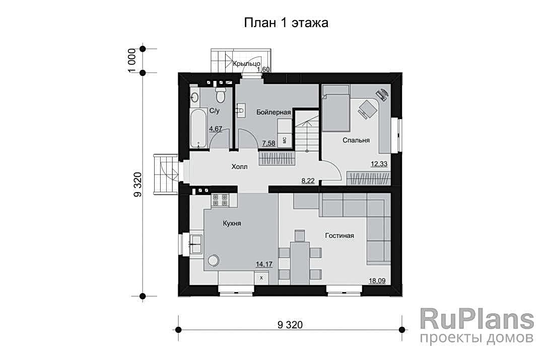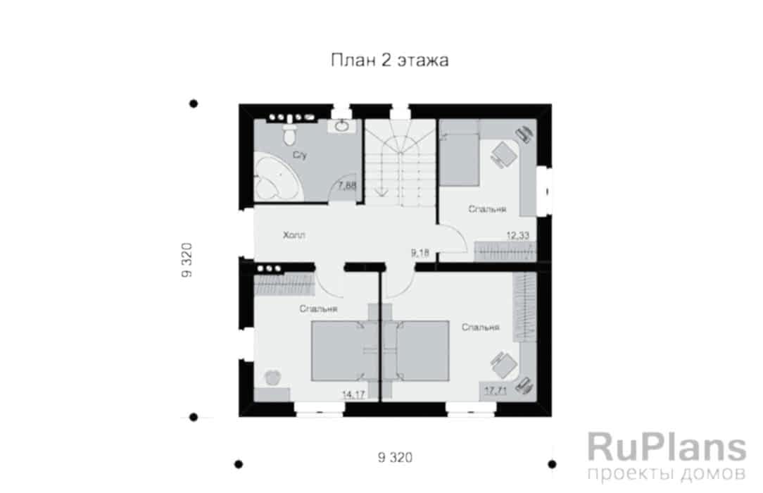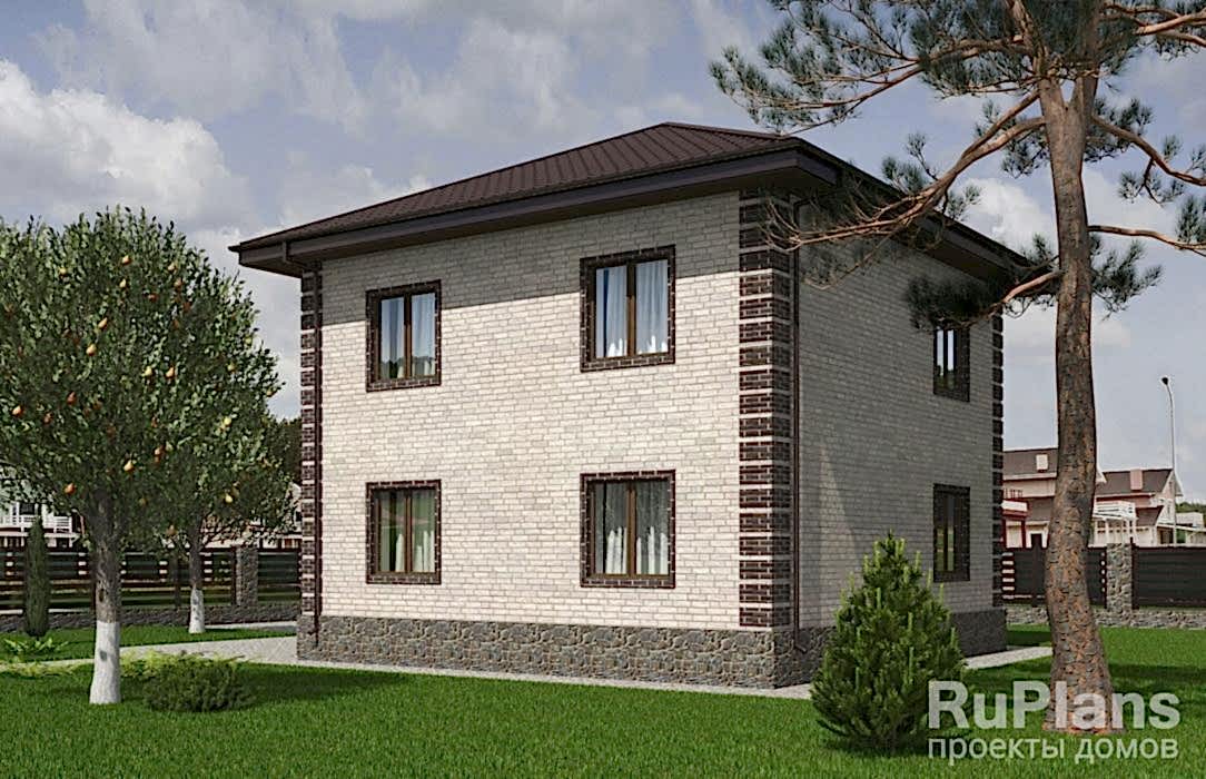 Проект двухэтажного дома «Адмирал 159» из газобетонных Pin Up Байтурсынова, 74 составляет 126.33 кв.м а размеры 9.26 х 9.32