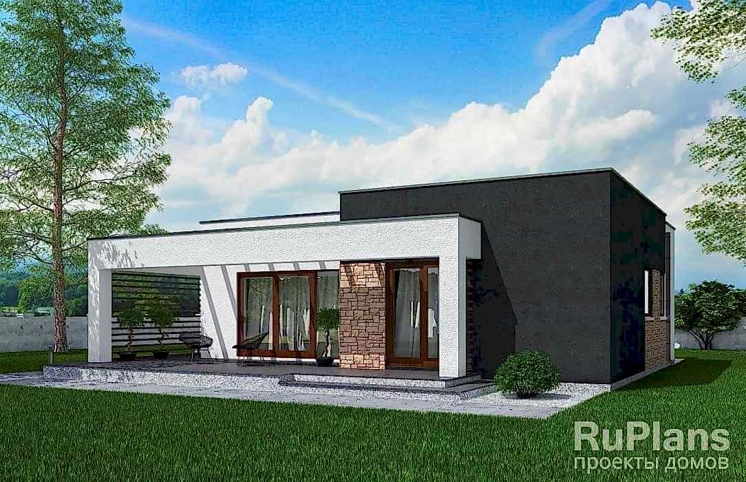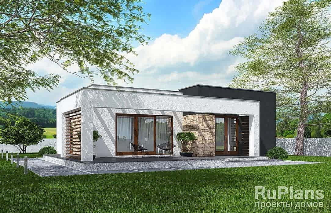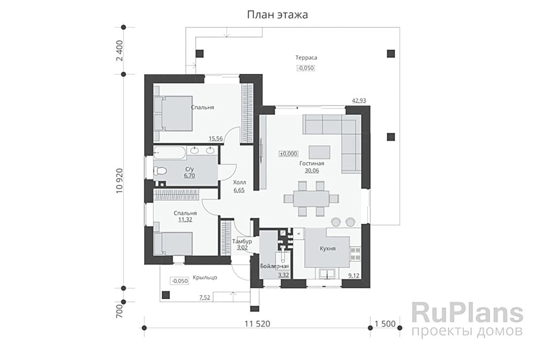 Pin Up одноэтажного дома «Адмирал 163» из газобетонных блоков.Площадь Жандосова, 63 составляет 85,75 кв.м а размеры 10.92 х 11.52