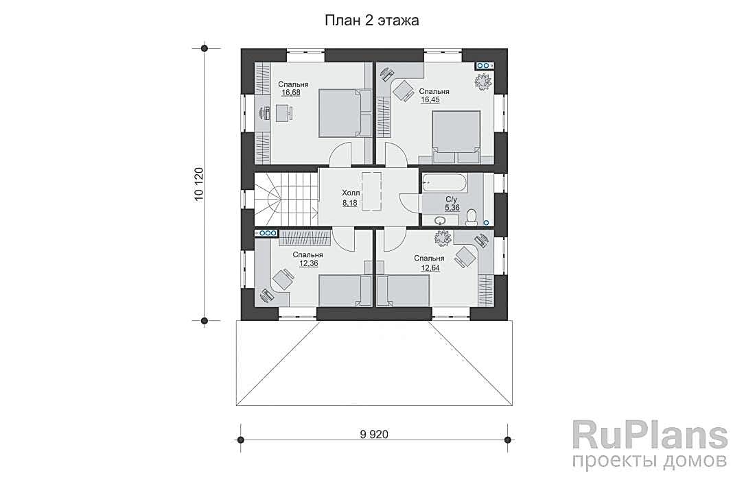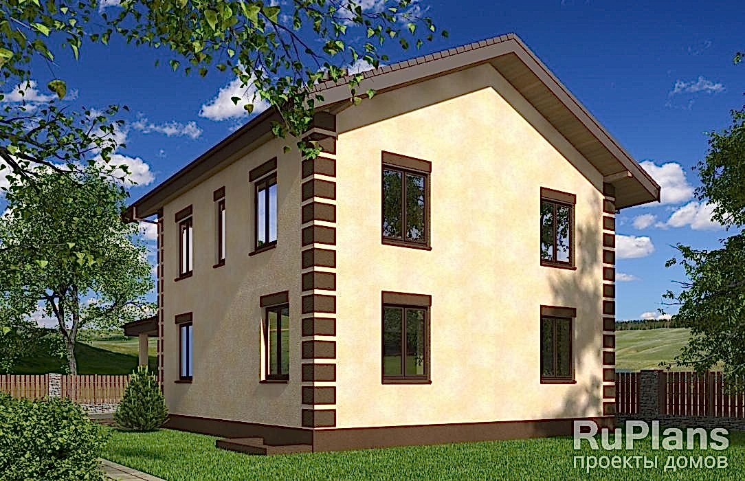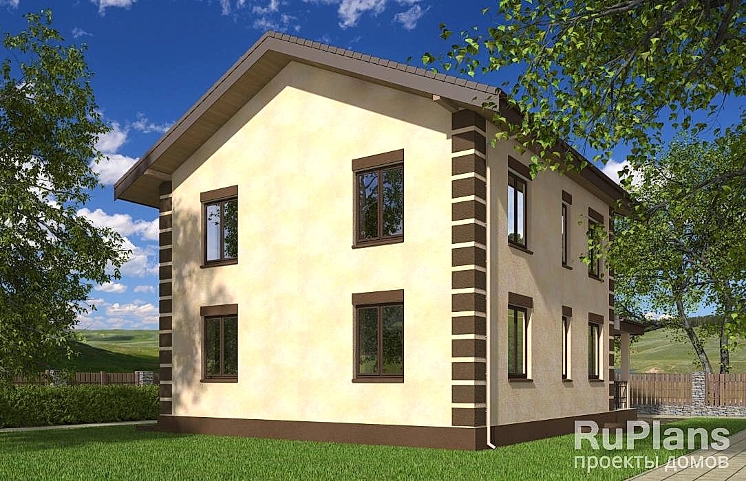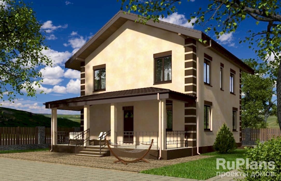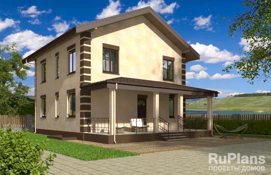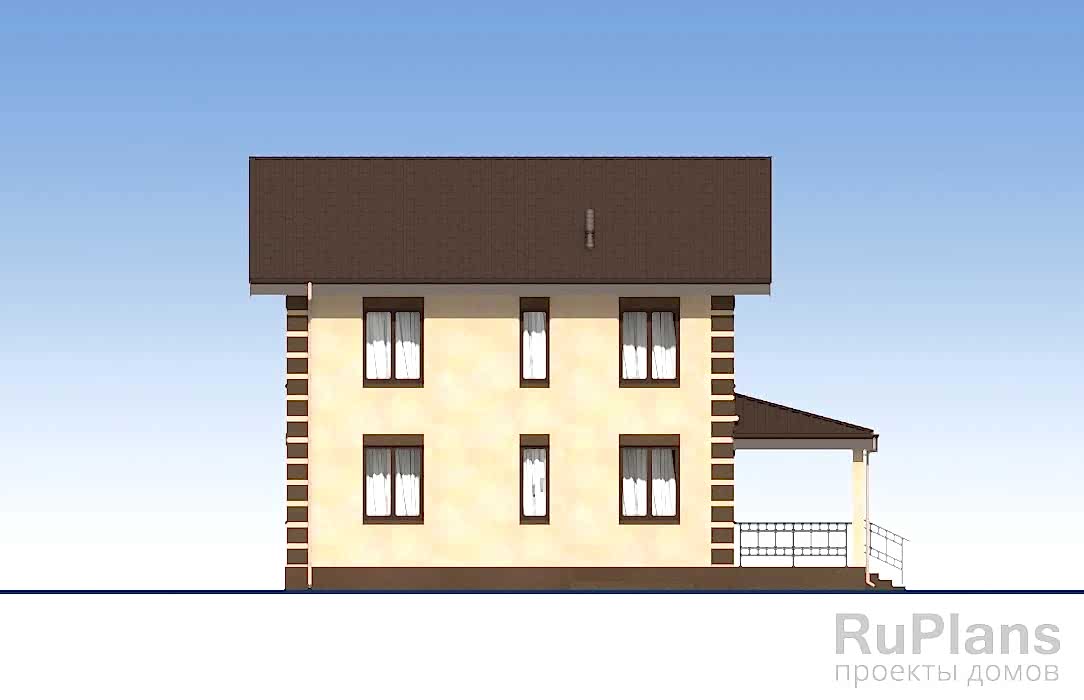 Проект двухэтажного дома «Адмирал 170» с террасой из газобетонных Pin Up Сатпаева, 106 составляет 214.61 кв.м а размеры 10.12 х 9.92