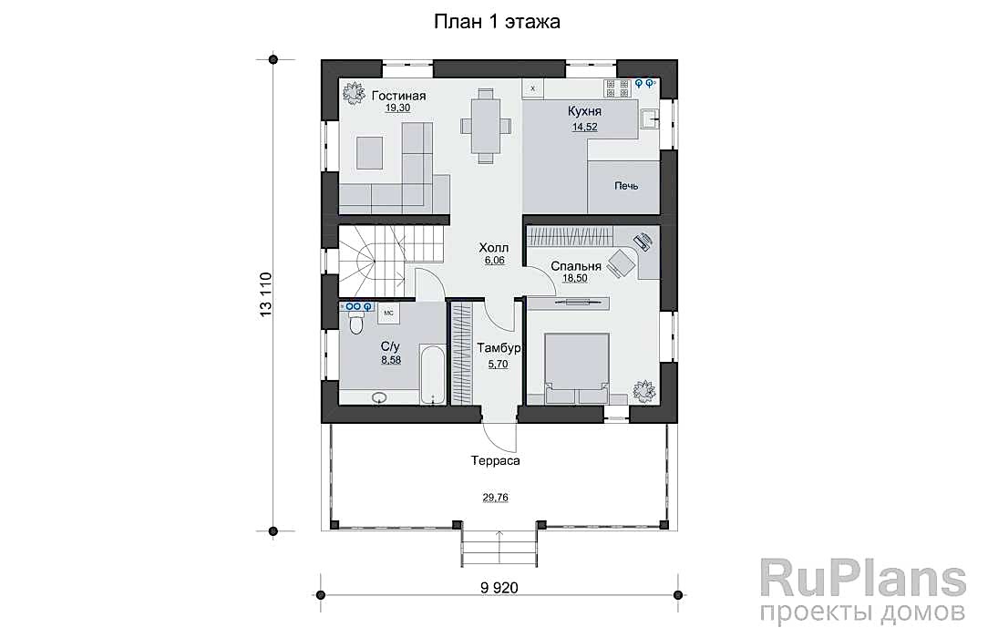 Ниже представлена планировка дома, при вашем желани наш проектировщик может внести корректировки в эту Pin Up под ваши потребности