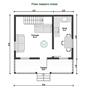 Pin Up одноэтажного дома «Флагман 17» с мансардой.Площадь Байтурсынова, 113 составляет 48 кв.м а размеры 6 х 6