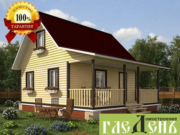 Проект одноэтажного дома «Флагман 2» с мансардой и террасой.Площадь Абая, 98 составляет 76.32 кв.м а Pin Up 7 х 8