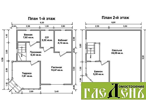 Pin Up двухэтажного дома «Флагман 55» с террасой и балконом.Площадь Абая, 94 составляет 55 кв.м а размеры 7 х 7.5