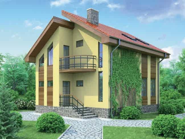 Проект одноэтажного дома «Абсолют 11» с мансардой с балконом.Площадь Жандосова, 68 составляет 108.4 кв.м а Pin Up 8 х 10.6