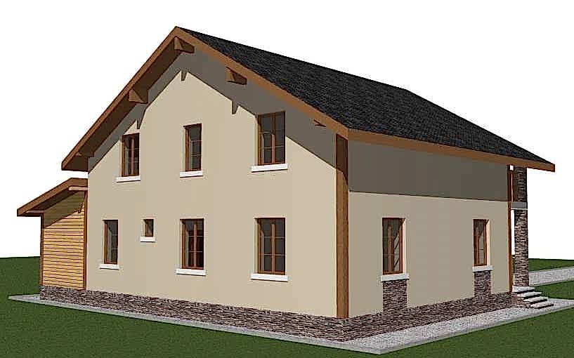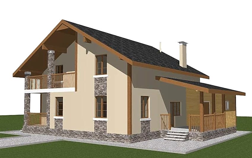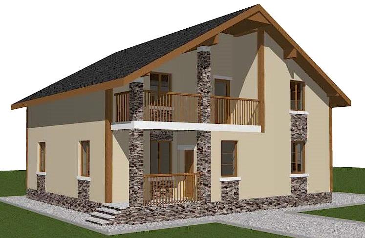 Проект одноэтажного дома «Абсолют Pin Up с мансардой, террасой и балконом.Площадь Жандосова, 132 составляет 180 кв.м а размеры 15 х 11