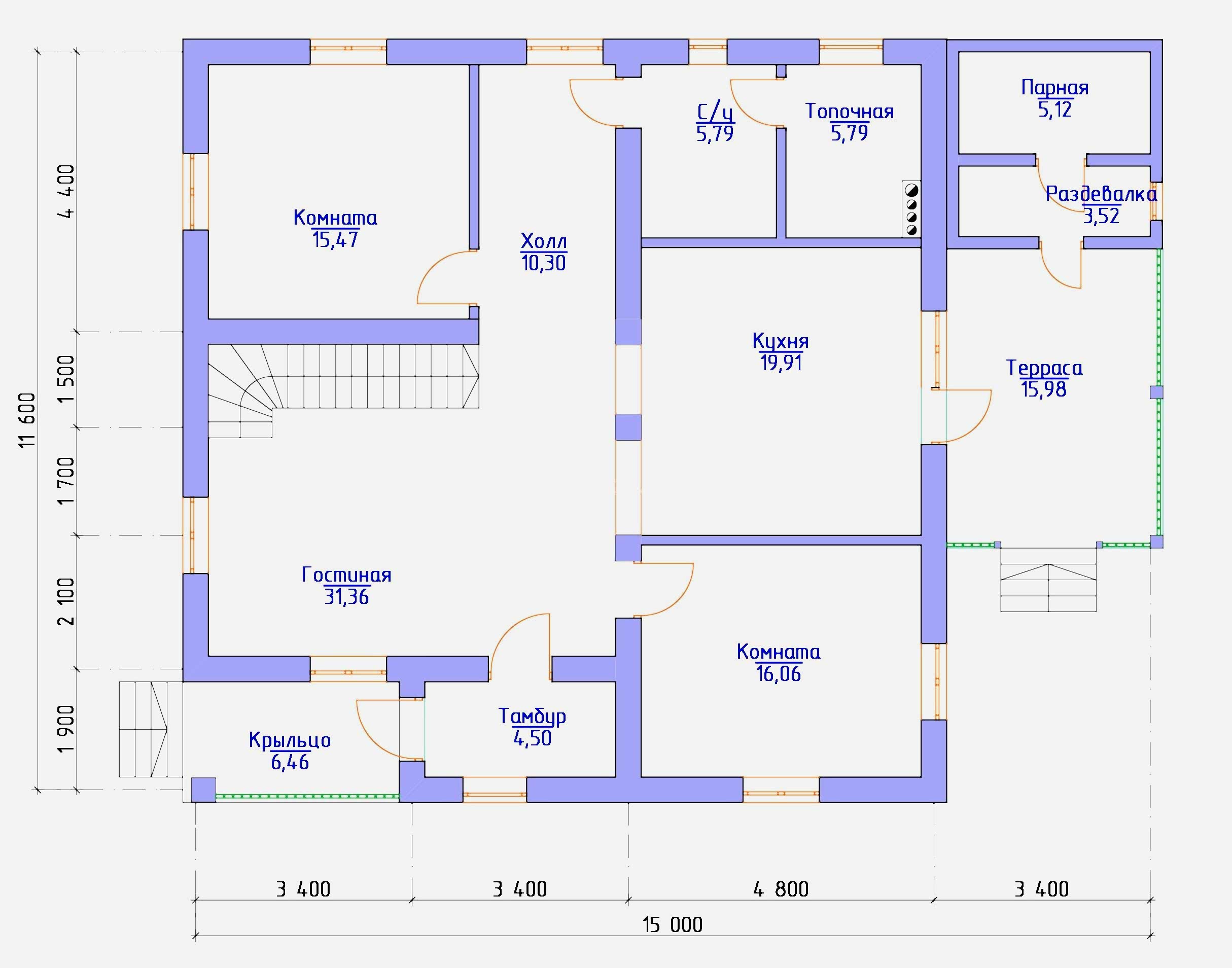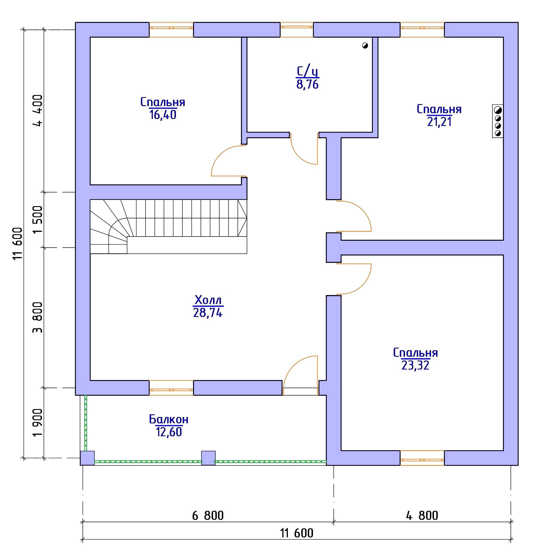 Ниже представлена планировка дома, при вашем желани наш проектировщик может внести Pin Up в эту планировку под ваши потребности