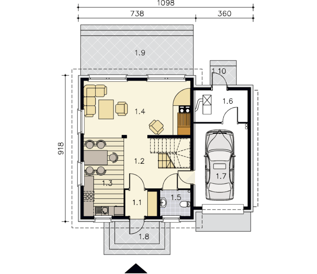 Pin Up одноэтажного дома «Абсолют 14» с мансардой.Площадь Назарбаева, 139 составляет 109 кв.м а размеры 7 х 9