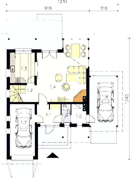 Ниже представлена планировка дома, при вашем желани наш проектировщик может Pin Up корректировки в эту планировку под ваши потребности