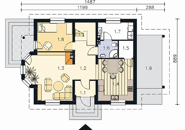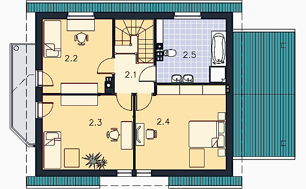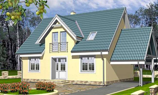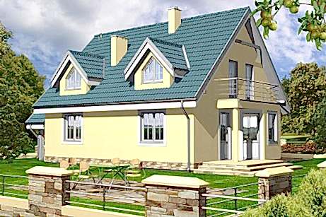 Проект одноэтажного дома «Абсолют 34» с мансардой с балконом.Площадь Сейфуллина, 93 Pin Up 124 кв.м а размеры 8.8 х 11