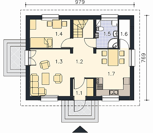 Проект Pin Up дома «Абсолют 5» с мансардой.Площадь Жандосова, 122 би, 18 составляет 87.7 кв.м а размеры 7 х 9