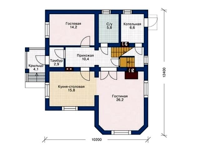 Pin Up одноэтажного дома «Абсолют 65» с мансардой.Площадь Рыскулова, 93 составляет 163 кв.м а размеры 10.2 х 12.4