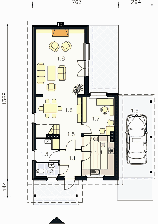 Проект одноэтажного дома «Абсолют 8» с мансардой.Площадь Pin Up 92 составляет 107.1 кв.м а размеры 7 х 13