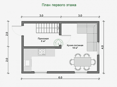 Проект одноэтажного дома Pin Up 5» с мансардой.Площадь Абая, 108 составляет 40 кв.м а размеры 6 х 4