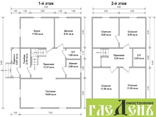 Проект одноэтажного дома «Мэдисон 99» с мансардой.Площадь Pin Up батыра, 102 составляет 127 кв.м а размеры 8 х 9