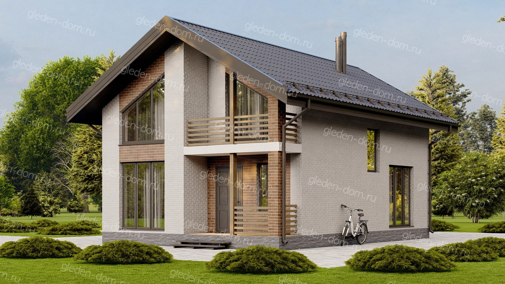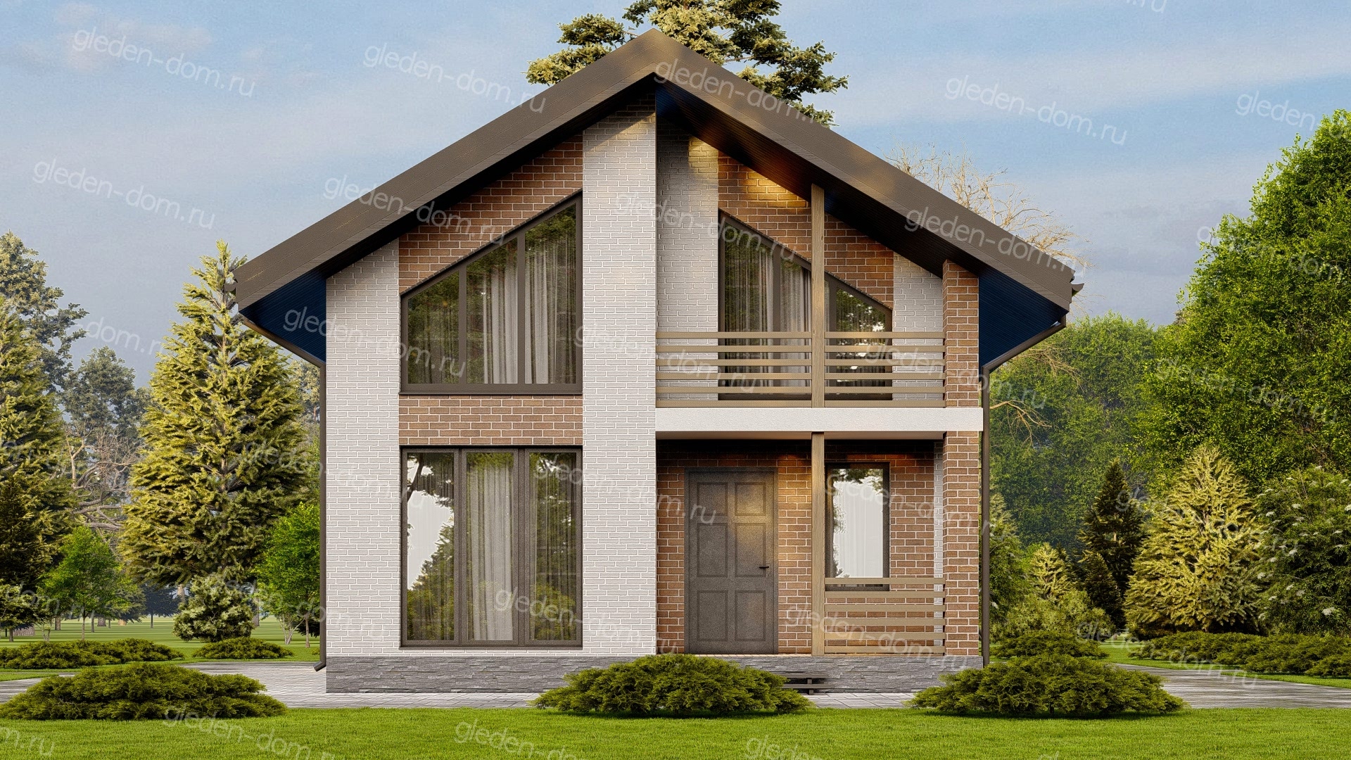 Проект двухэтажного дома «Gleden Pin Up из газобетонных блоков.Площадь Жандосова, 48 составляет 53 кв.м а размеры 8 x 9