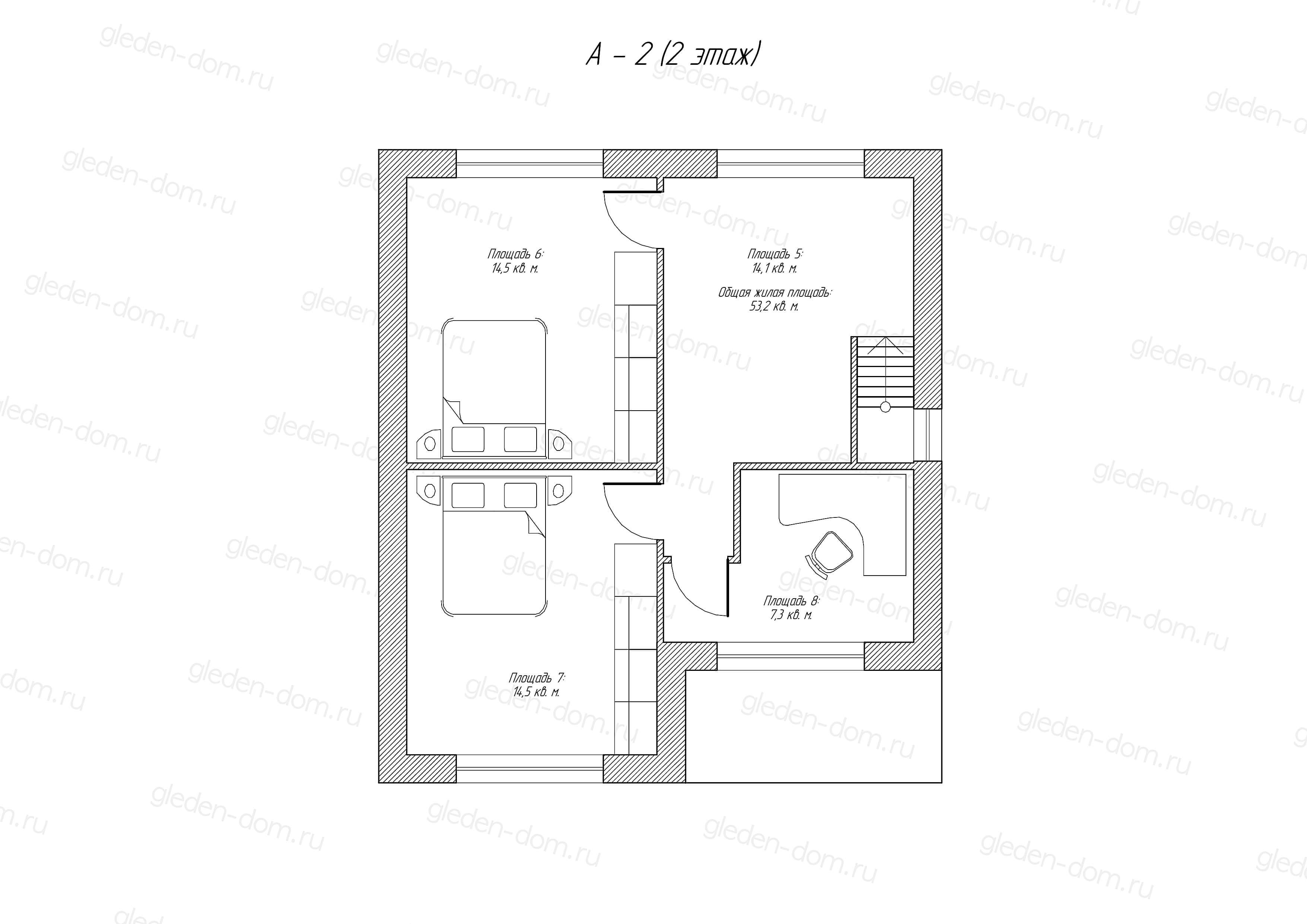 Проект двухэтажного дома «Gleden Pin Up из газобетонных блоков.Площадь Жандосова, 48 составляет 53 кв.м а размеры 8 x 9