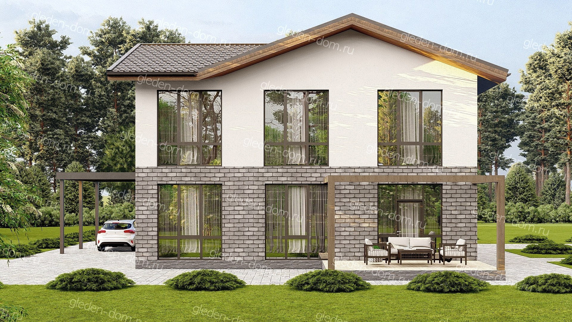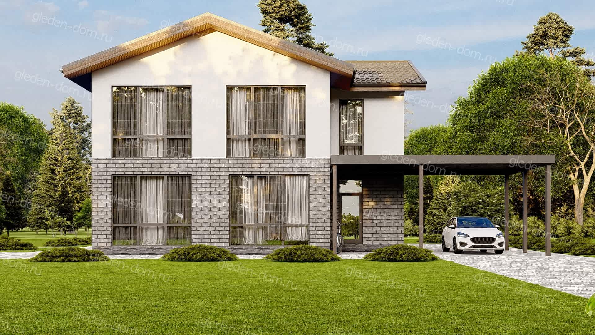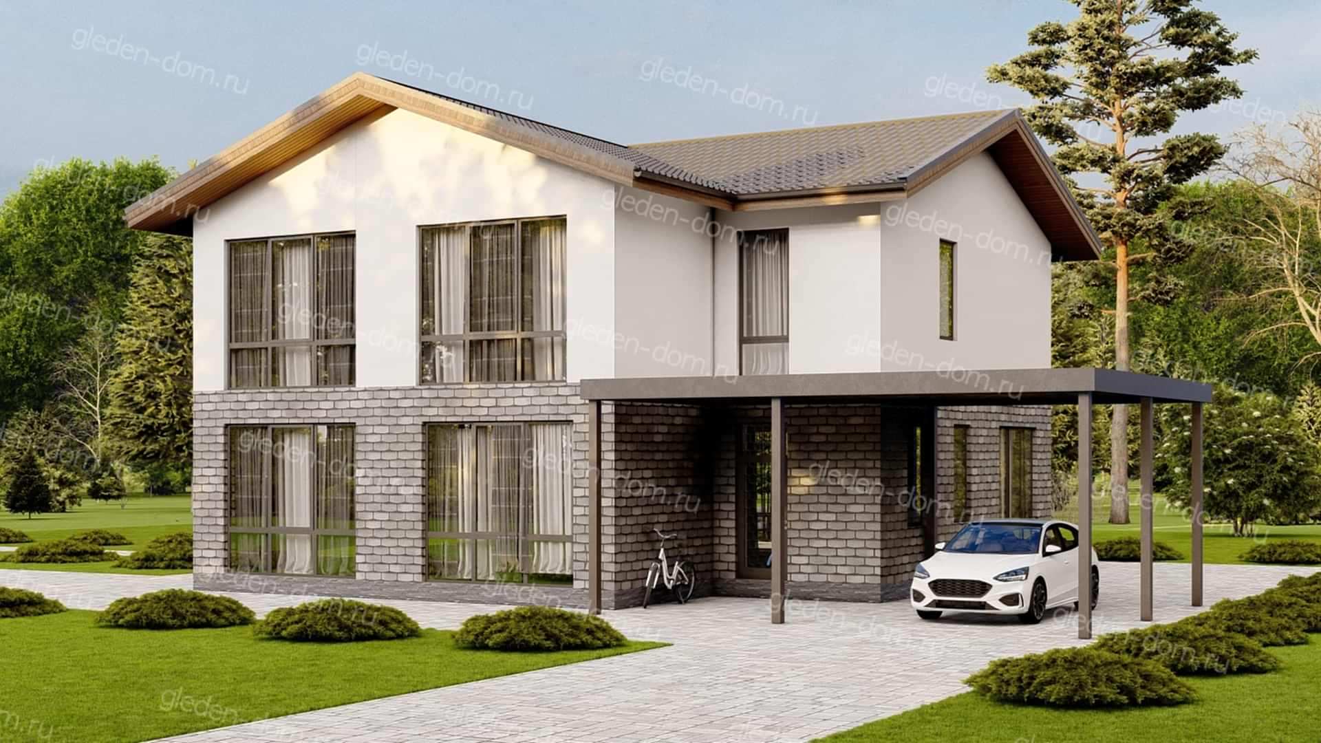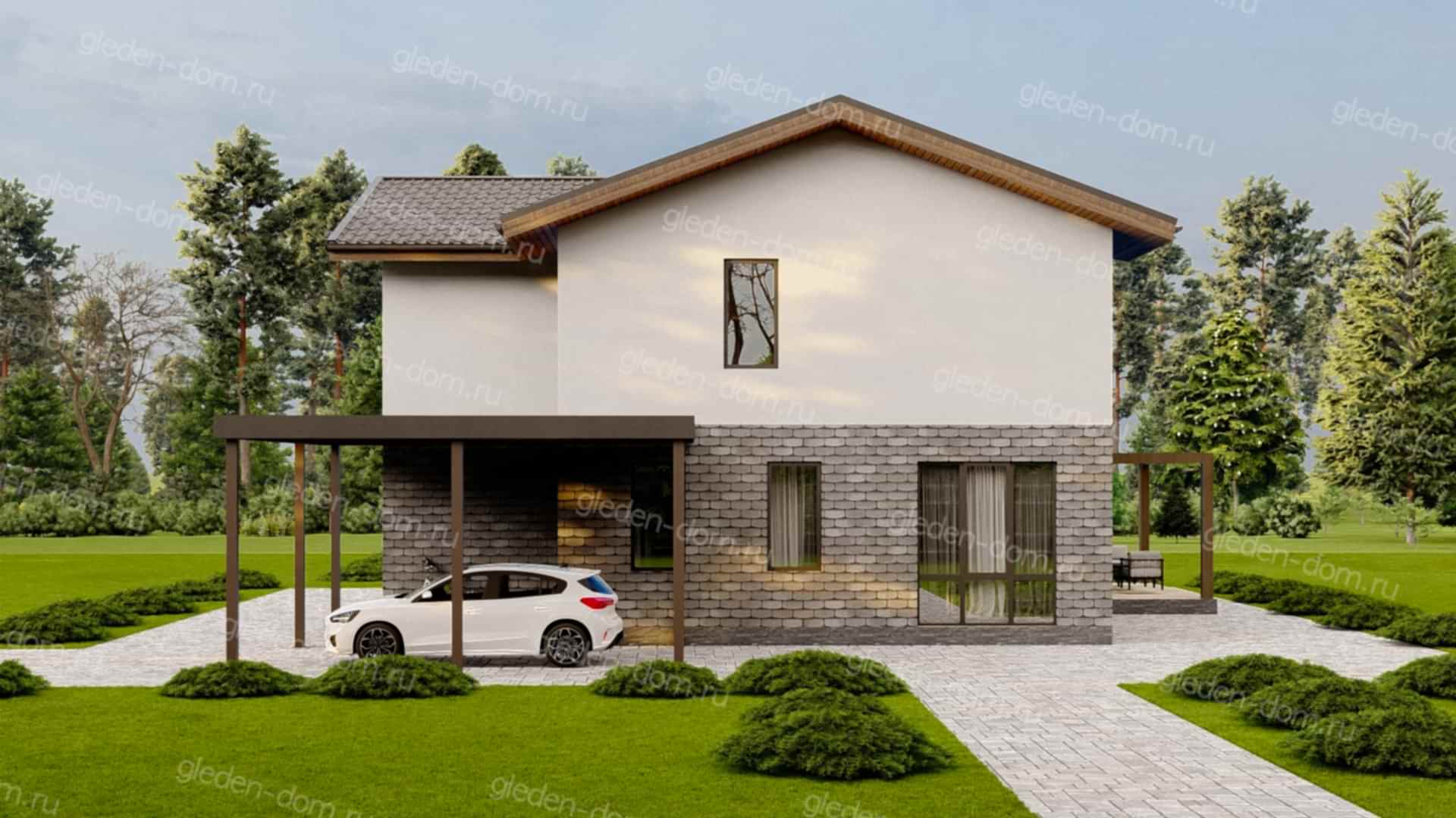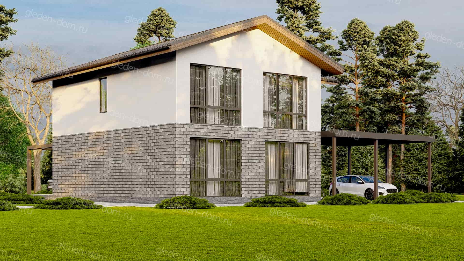 Проект двухэтажного Pin Up «Gleden L-3» из газобетонных блоков.Площадь Достык, 10 составляет 75 кв.м а размеры 12 x 9
