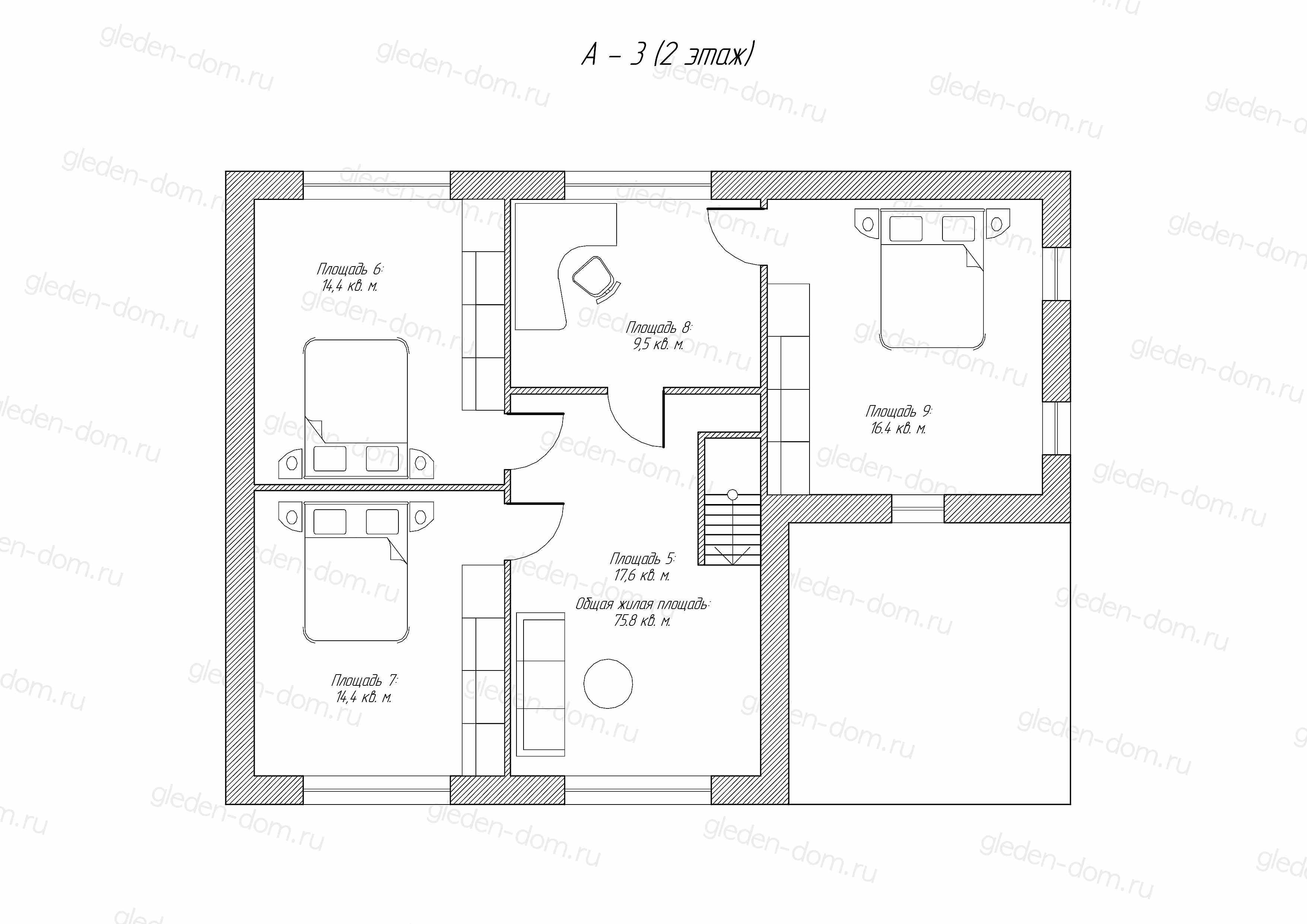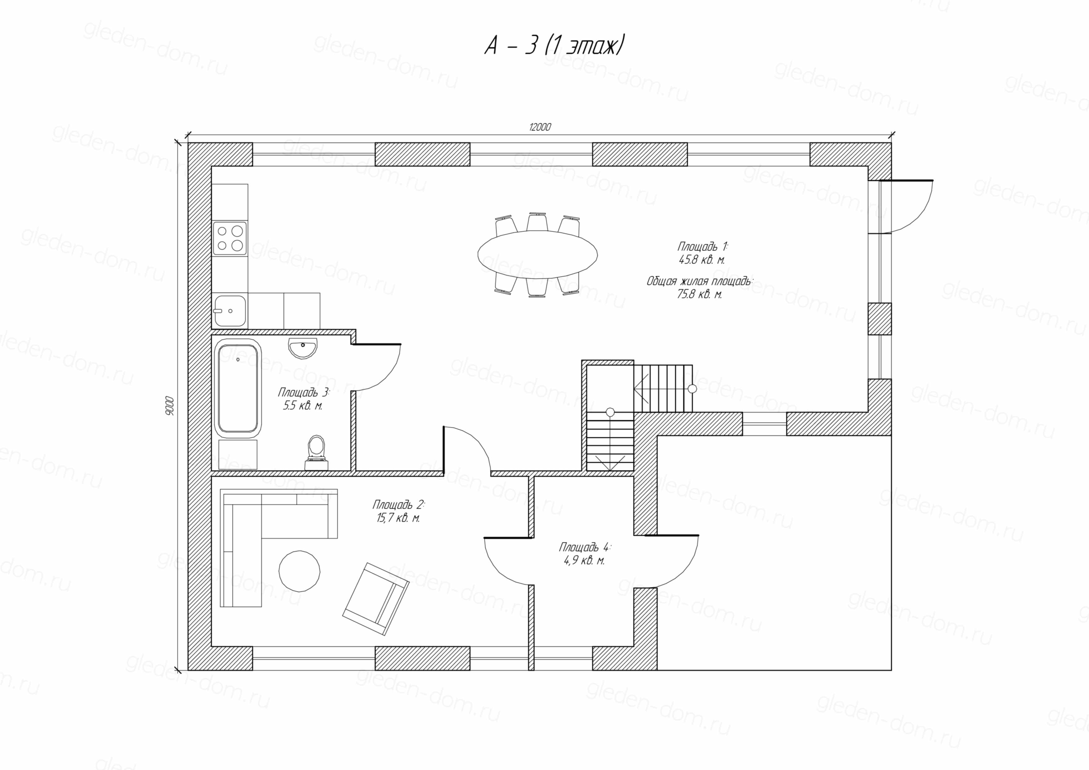 Проект двухэтажного Pin Up «Gleden L-3» из газобетонных блоков.Площадь Достык, 10 составляет 75 кв.м а размеры 12 x 9