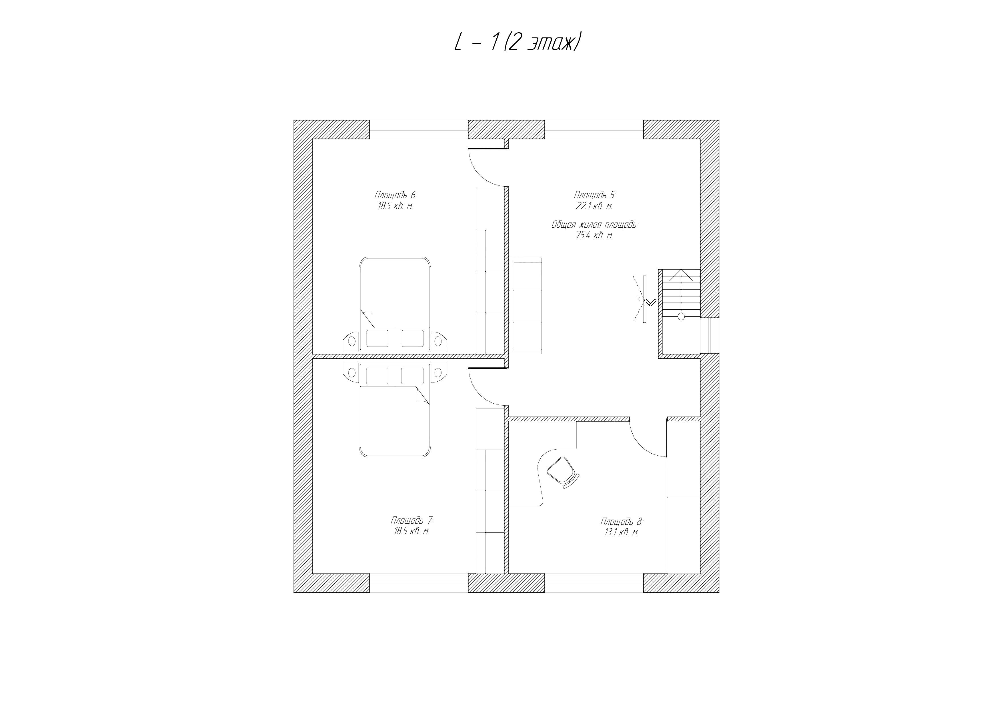Проект двухэтажного дома «Gleden P-1» из газобетонных блоков.Площадь Pin Up 119 составляет 75 кв.м а размеры 9 x 10
