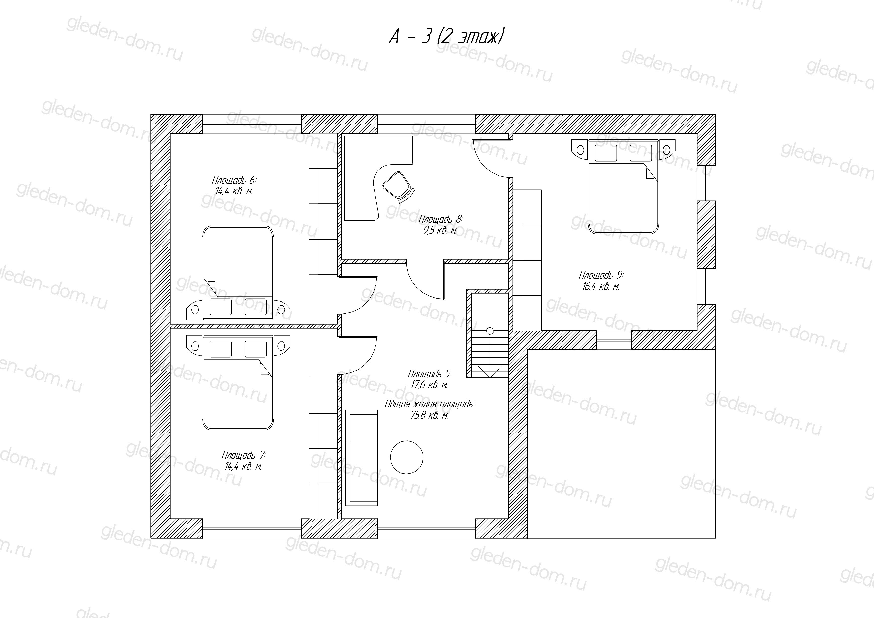 Проект двухэтажного дома «Gleden P-3» из газобетонных блоков.Площадь Сатпаева, 42 Pin Up 75 кв.м а размеры 12 x 9