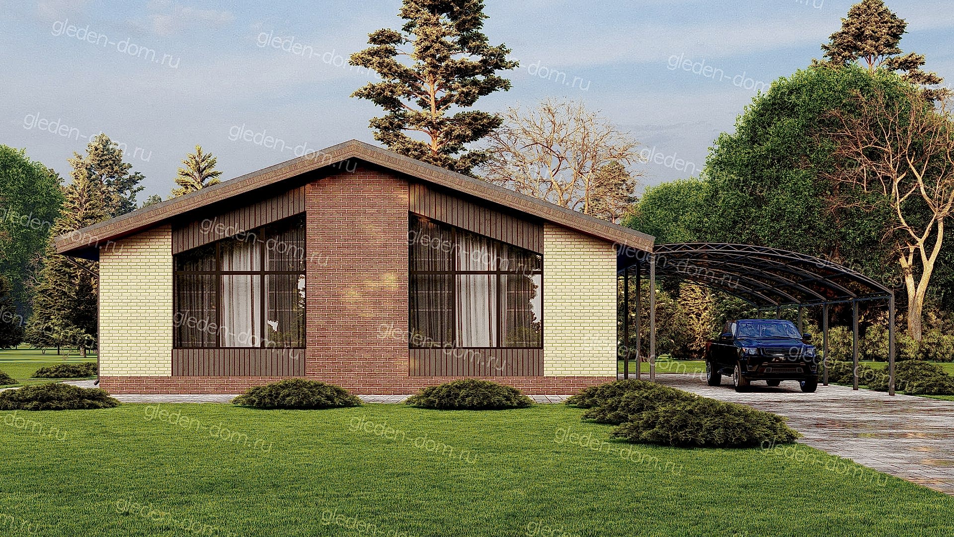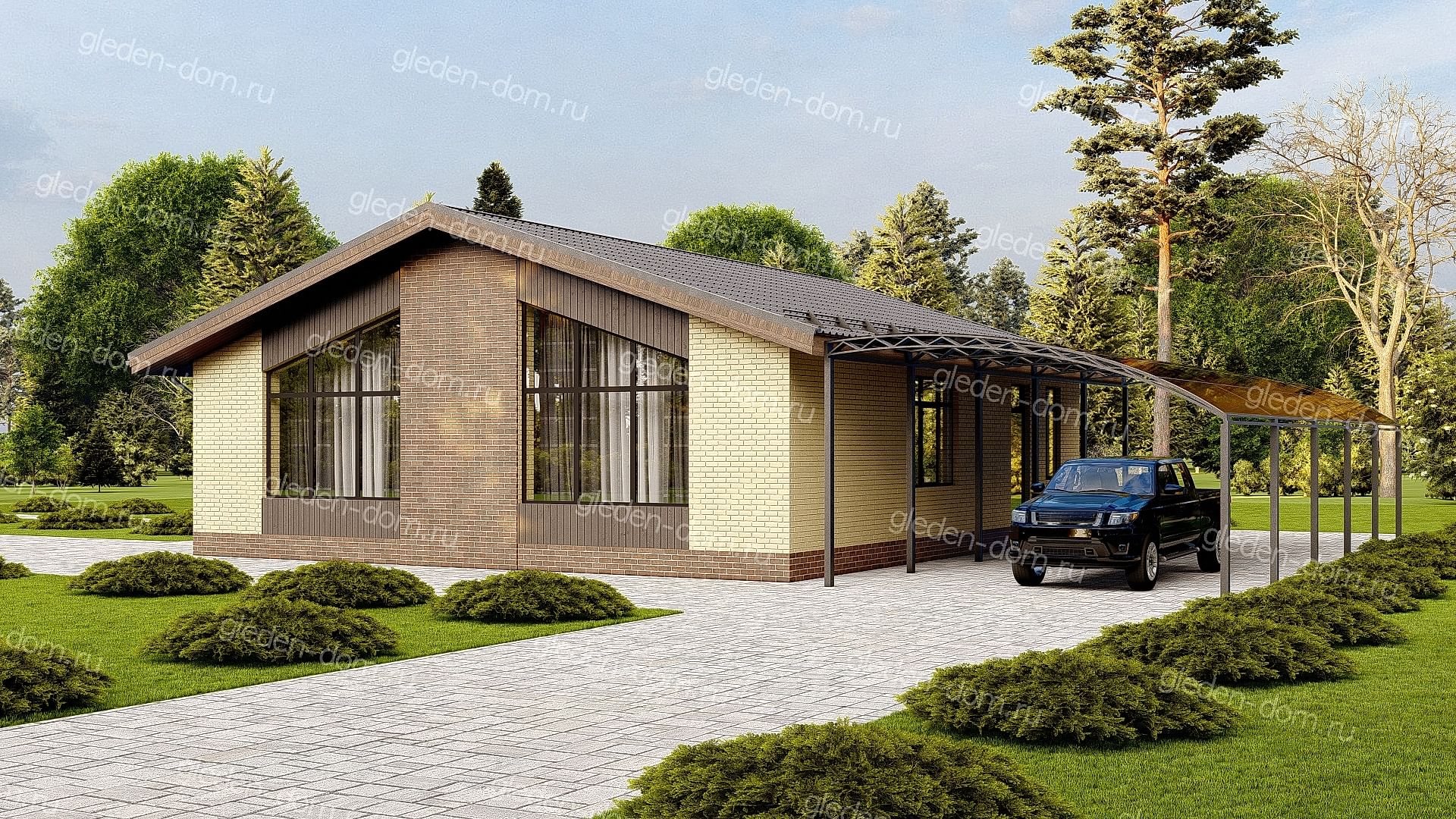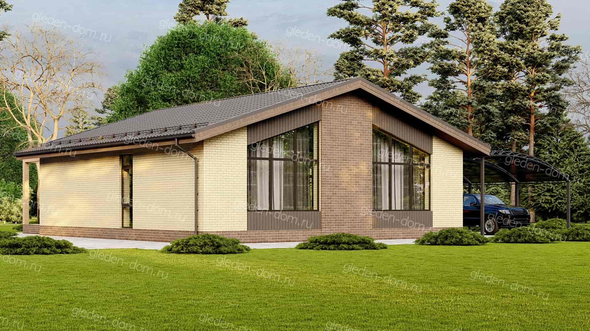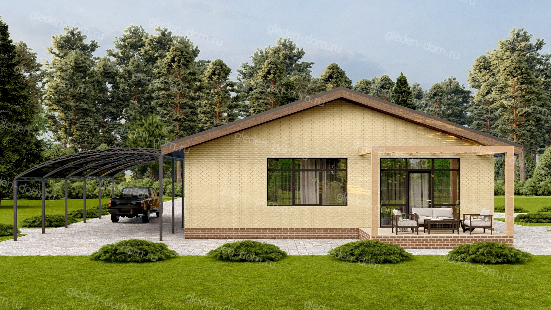 Проект одноэтажного дома «Gleden RA-1» из газобетонных блоков.Площадь Pin Up 133 составляет 59 кв.м а размеры 8 x 9